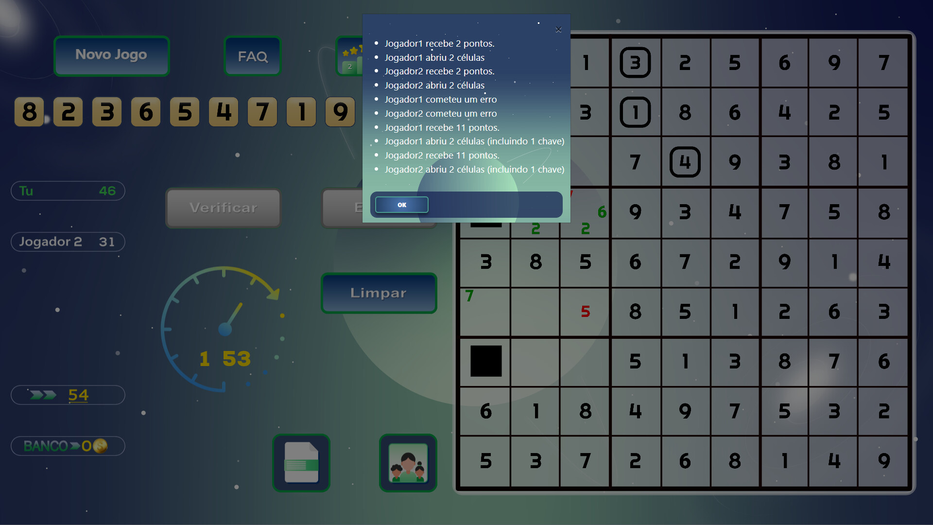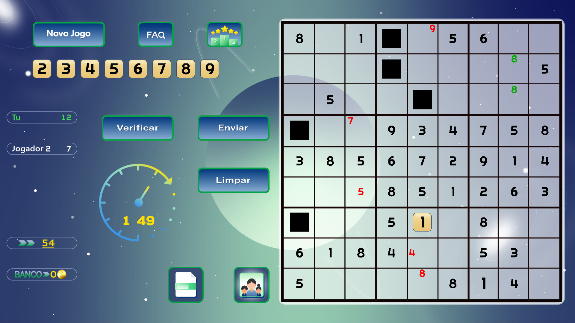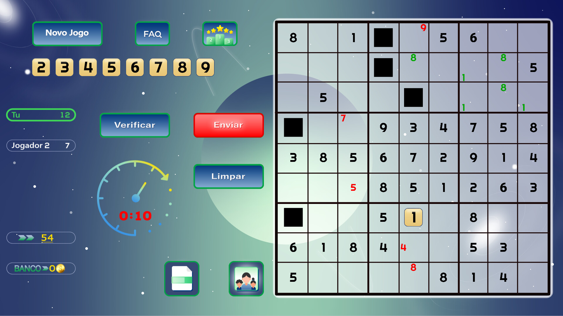 • Apostas e Vitória: Antes do jogo começar, cada um de vocês faz uma aposta igual com as suas moedas SUDOKU, formando um banco comum. O vencedor leva tudo!