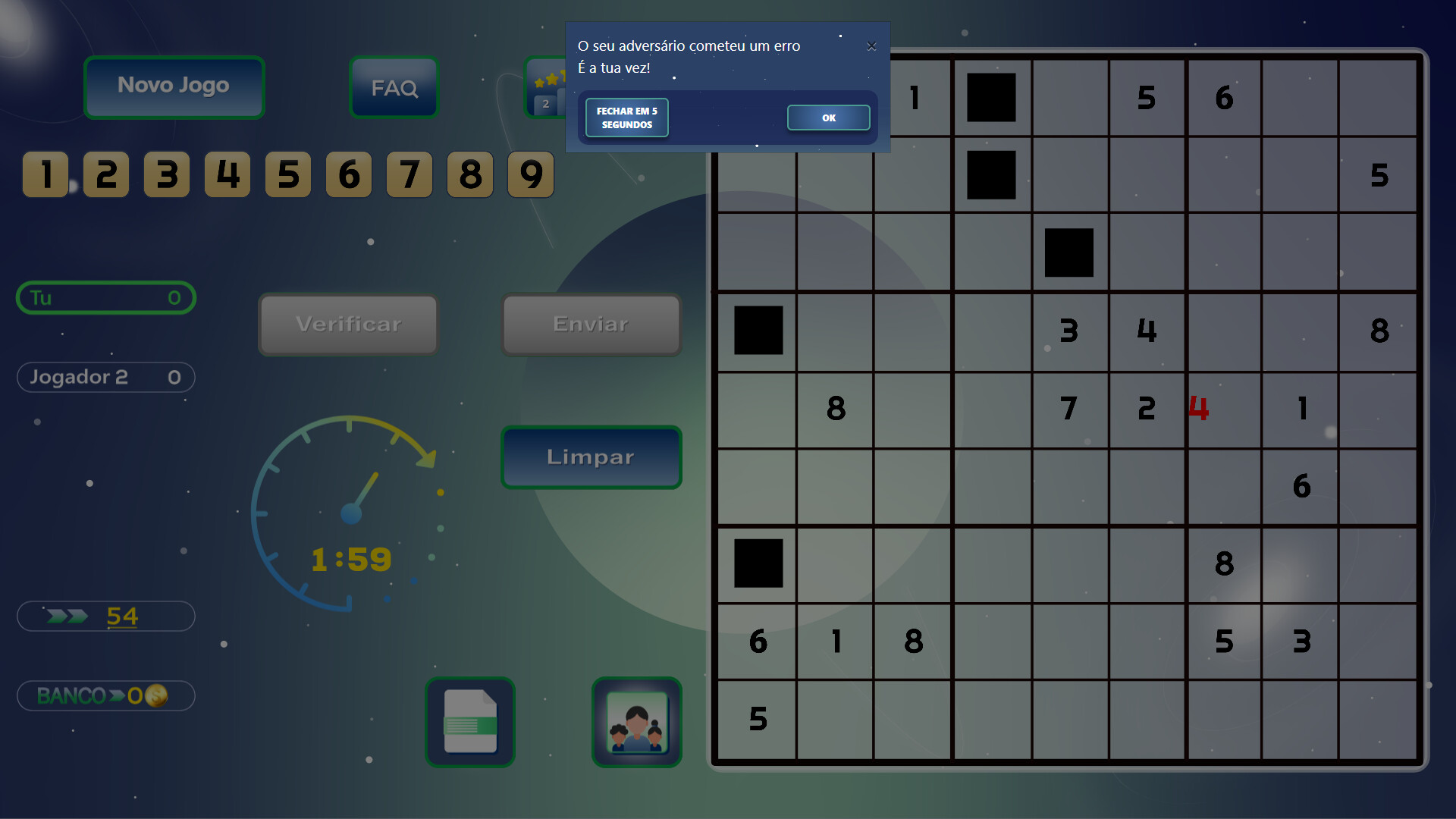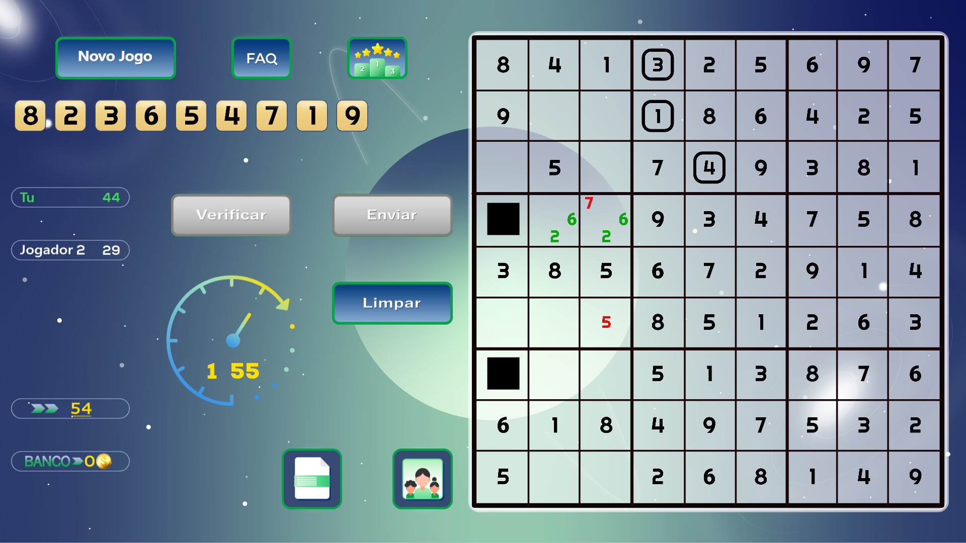 • A Lei da Harmonia: Cada linha, coluna e quadrado 3x3 é um espaço sagrado onde todos os números devem ser únicos. Se o seu movimento estiver incorreto, um pequeno número vermelho aparecerá na célula — uma marca de erro que ambos os jogadores verão. Não receberá nenhum ponto por esse movimento.
