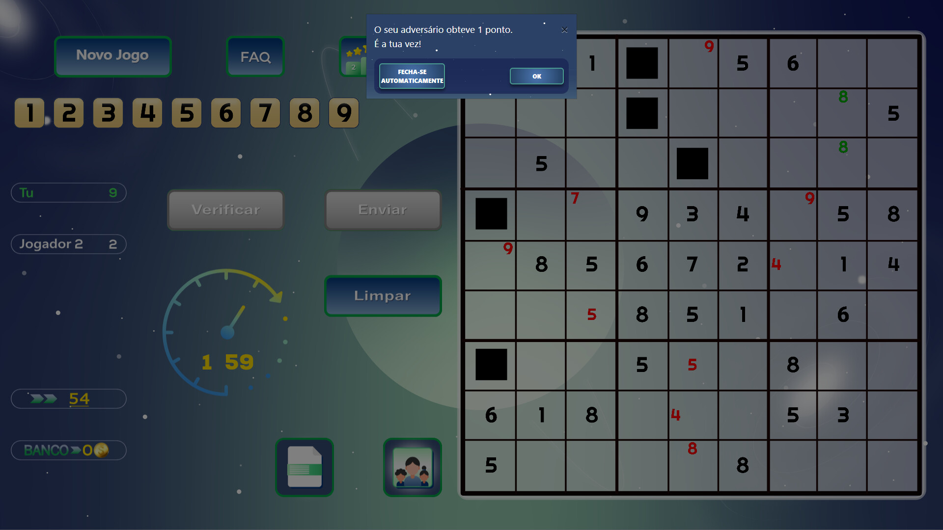 • Apostas e Vitória: Antes do jogo começar, cada um de vocês faz uma aposta igual com as suas moedas SUDOKU, formando um banco comum. O vencedor leva tudo!
