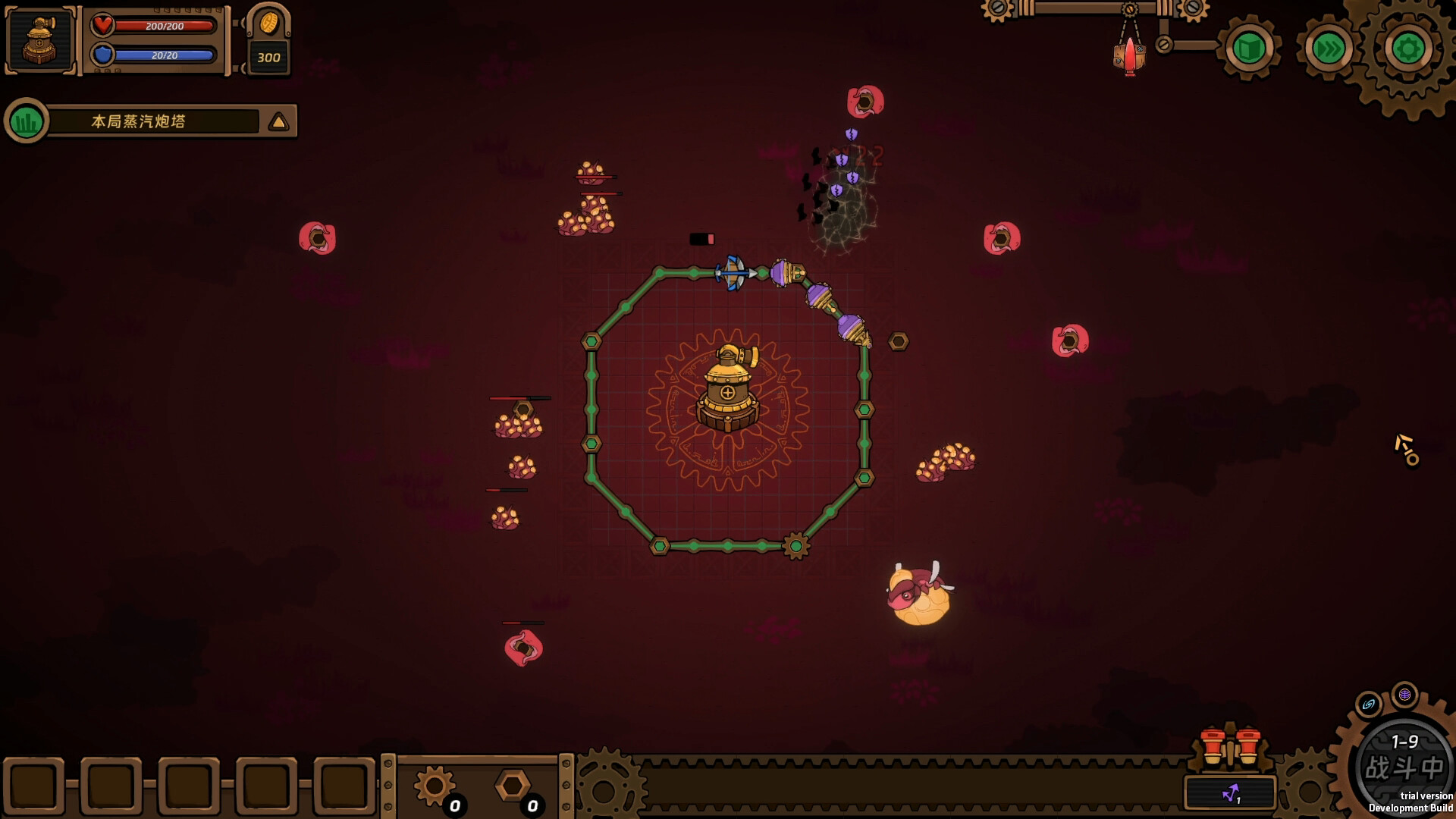 Rail Defence: Eldritch Siege is a tower defense roguelike where battle trains clash with cosmic horrors. In a steampunk world shrouded by the Eldritch God’s malevolent influence, you must craft rail networks, deploy enchanted trains, and upgrade their arcane powers to repel endless minions. Unlock new trains, bases, and relics to shape your strategy and hold the line against the otherworldly trials of the Eldritch God.