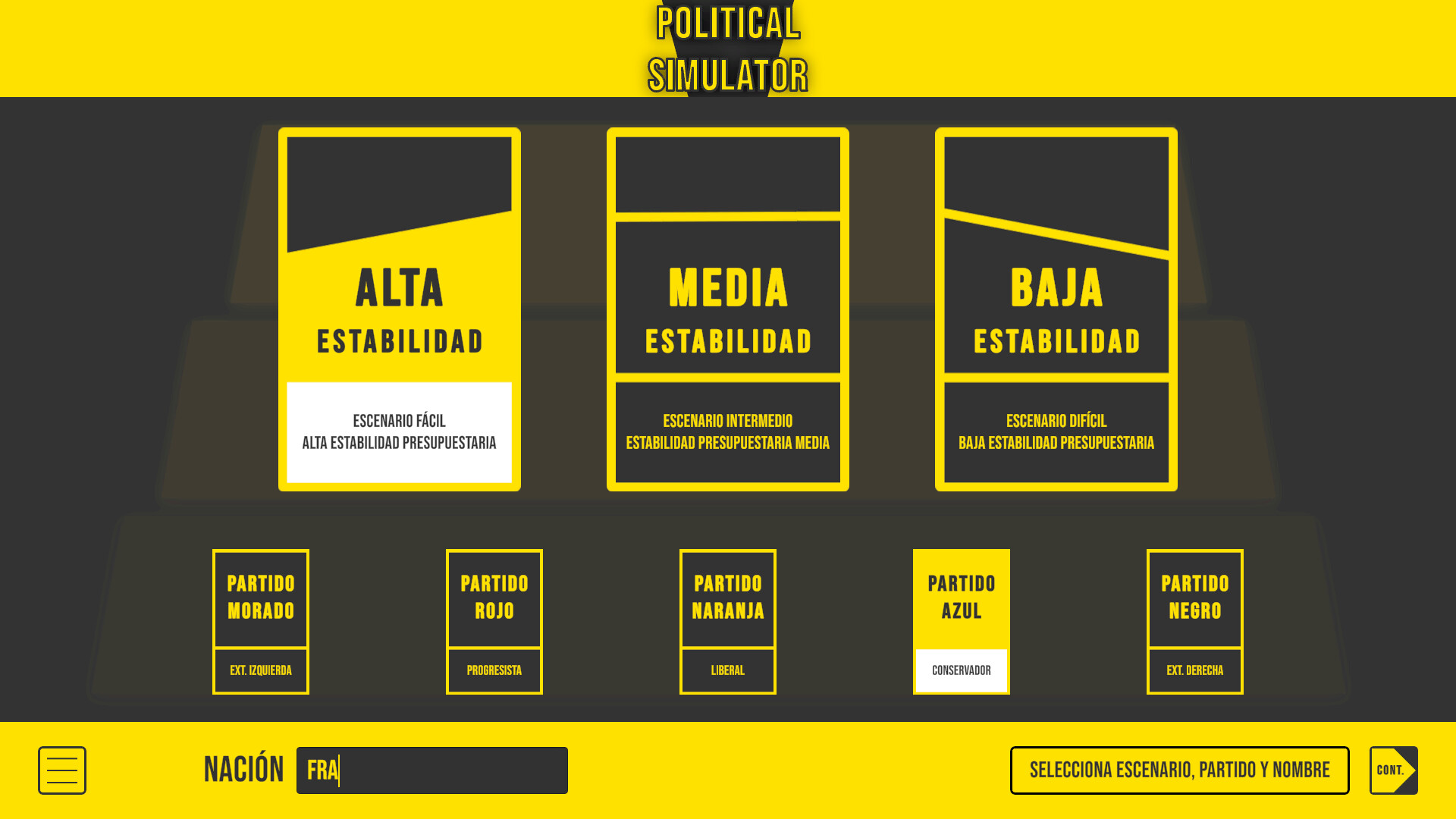 Deep Political Simulation: Control a party with its own ideology, from the far left to the far right.