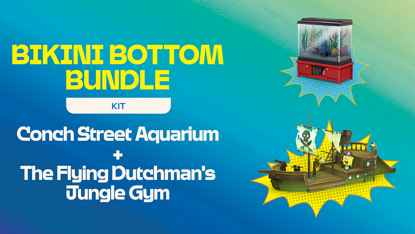 This bundle includes 3 exclusive items: The Goofy Goober Guitar, Conch Street Aquarium, and The Flying Dutchman’s Jungle Gym. Jam on the Goofy Goober Guitar, add quirky fun to your space with the Conch Street Aquarium, and host playdates on The Flying Dutchman’s Jungle Gym. This bundle and all 3 exclusive items are available for a limited time only.*