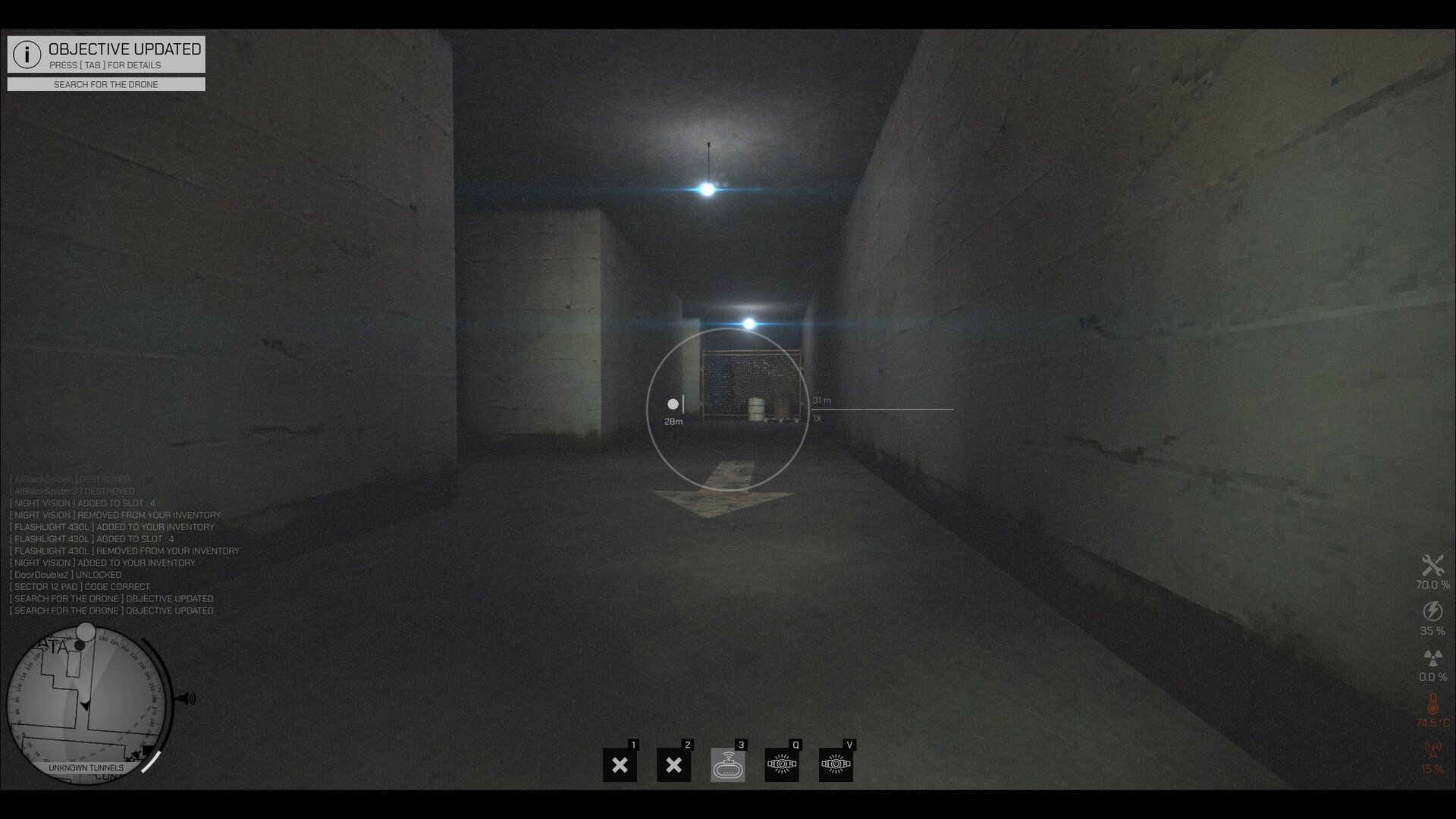 The game includes a wide range of features. In this dangerous dimension, the drone must complete its mission: explore, gather data, and survive in a hostile world. To succeed, it relies on a variety of specialized tools and devices. One of them is: