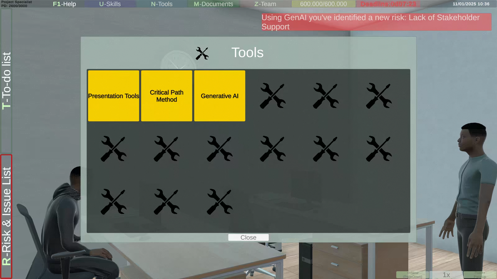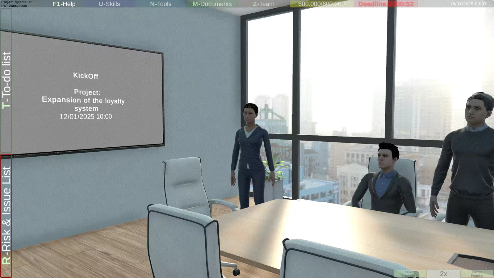 During the game, you have the opportunity to increase your experience, acquire new skills and tools, but you can only win by achieving the final goal: conducting the KickOff meeting.