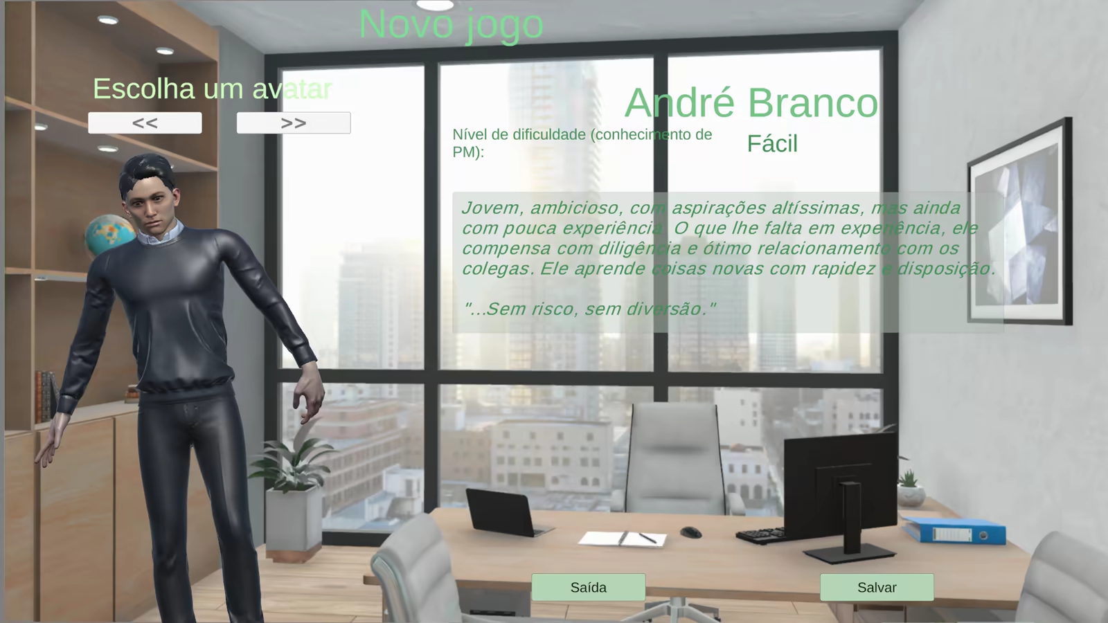 Um jogo estratégico que simula o trabalho de um Gerente de Projetos em uma grande corporação. Em primeira pessoa, você adquire as habilidades e ferramentas essenciais para o trabalho de GP durante a primeira etapa de um projeto: a iniciação.