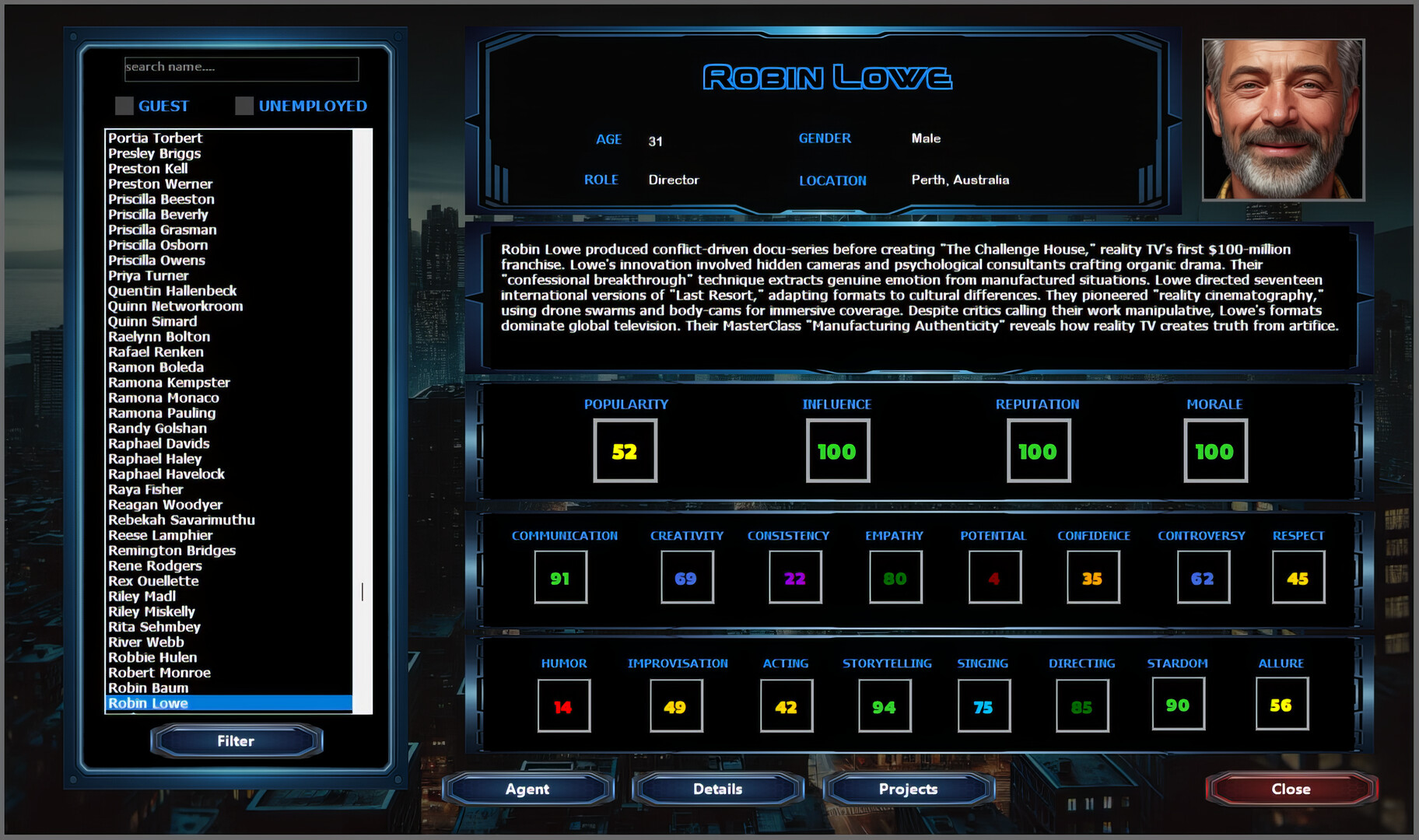 Build your dream late-night TV empire in this deep management sim. Book celebrity guests, shape your show's identity, hire staff, craft unforgettable episodes, and battle rival networks for ratings, relevance, and cultural dominance in a living entertainment world of fame.