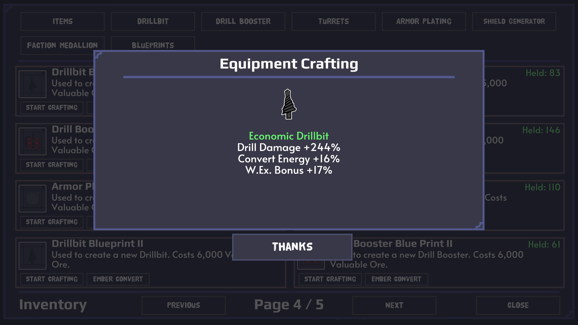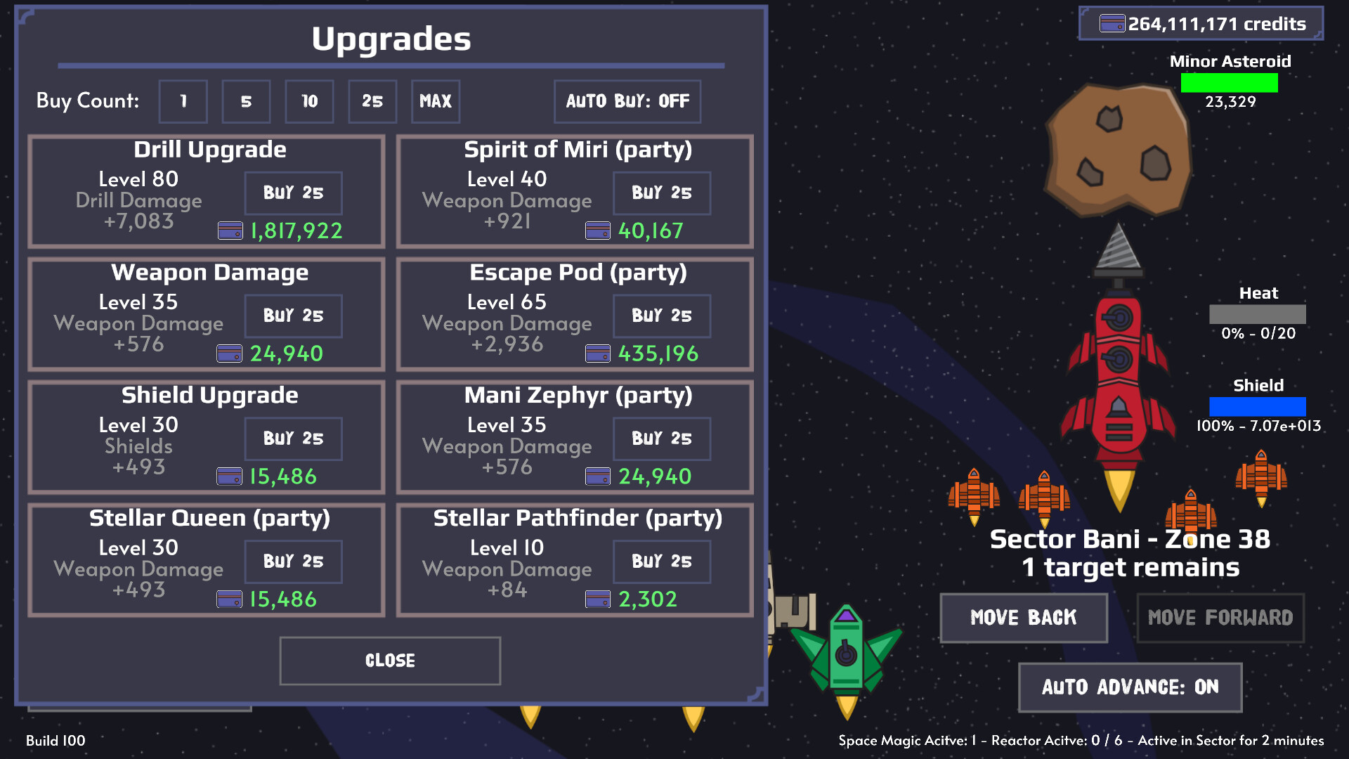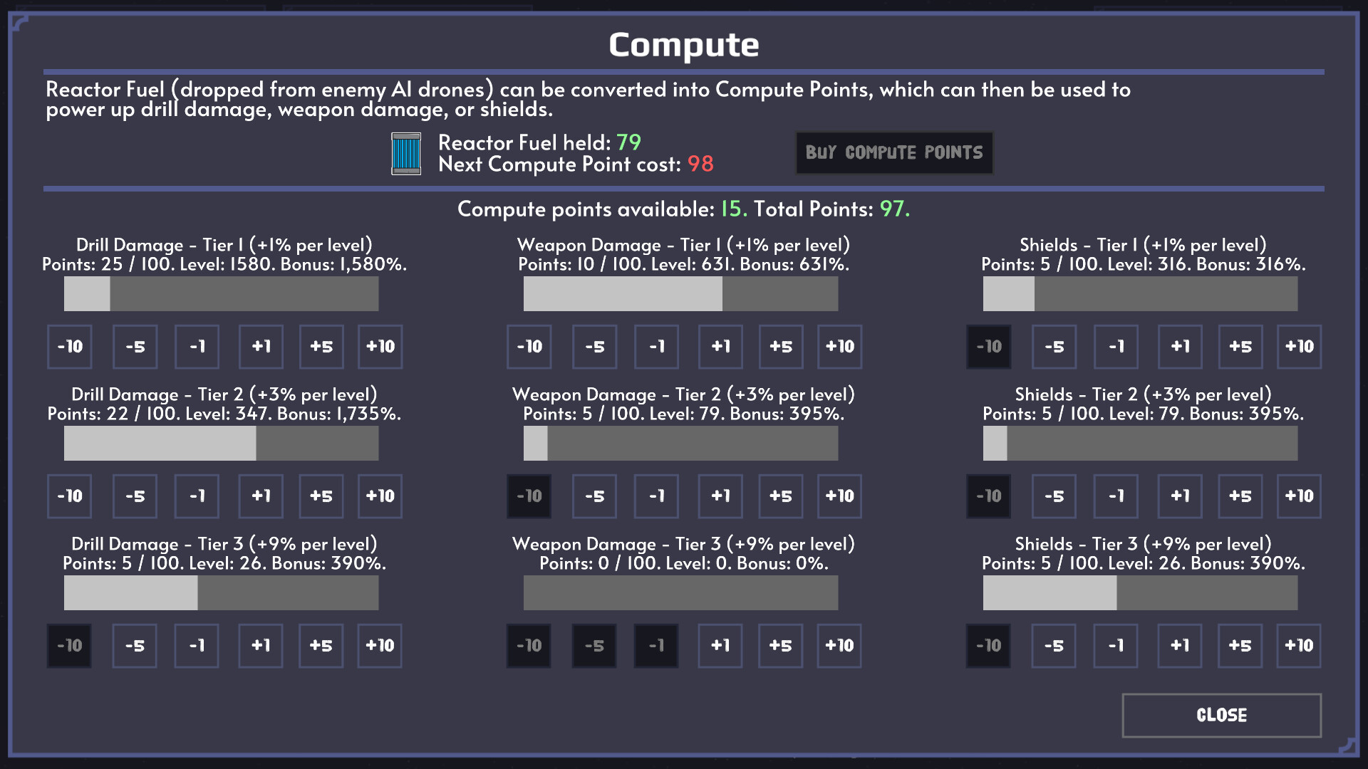• Return to Earth (prestige) and earn 5 different resources, which can be used to build help or upgrade your stats