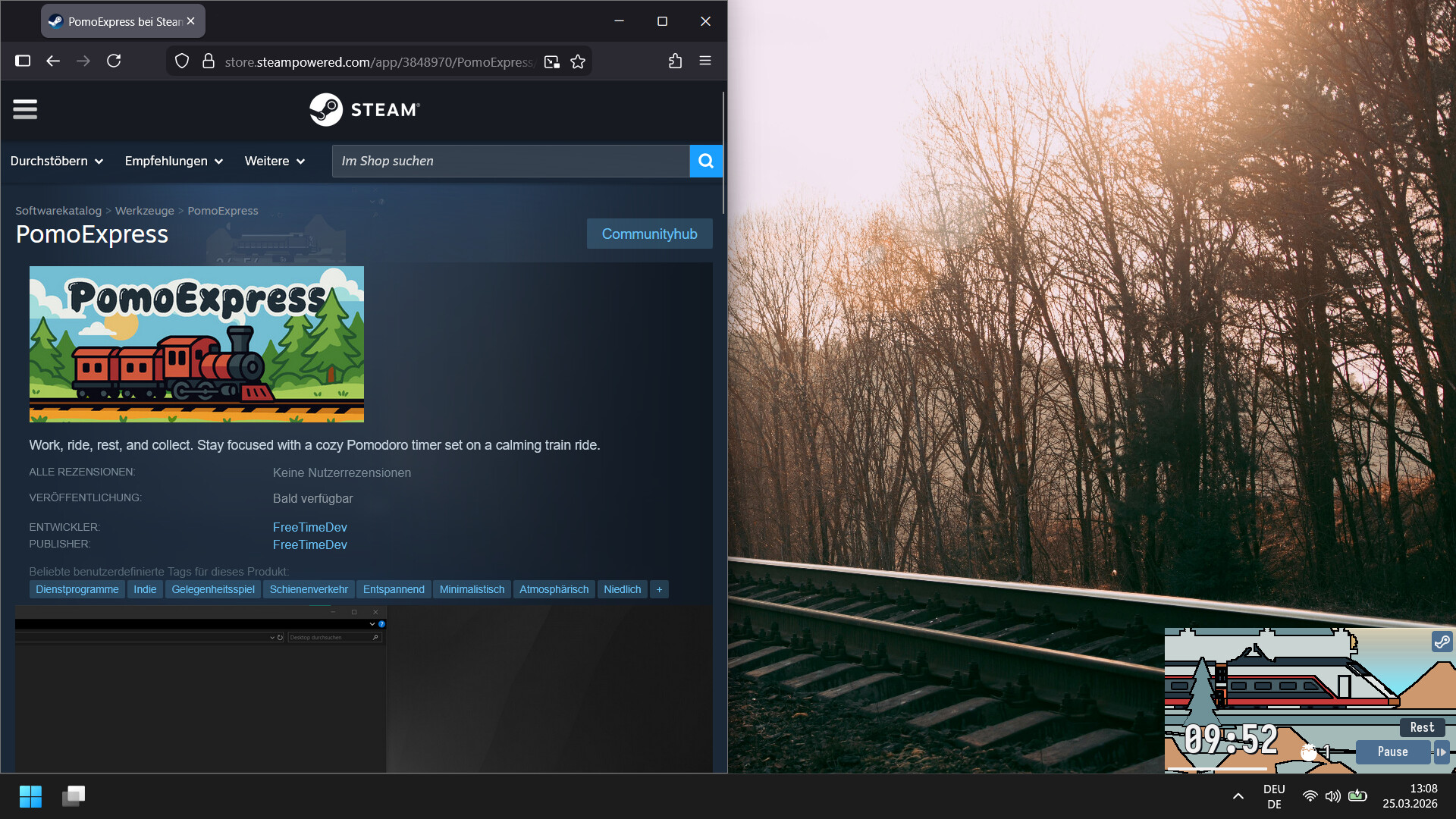 PomoExpress turns your focus sessions into tranquil train rides. Watch the scenery roll by as you work, rest, and repeat.