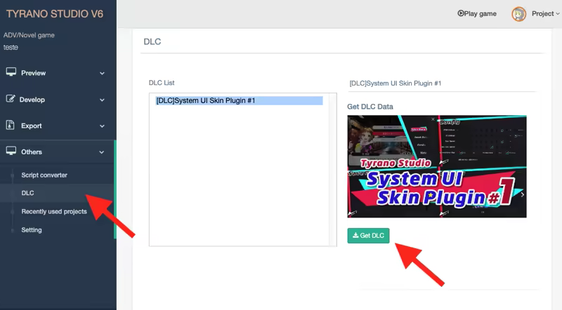 After purchasing the DLC, restart Tyrano Studio to apply the DLC.