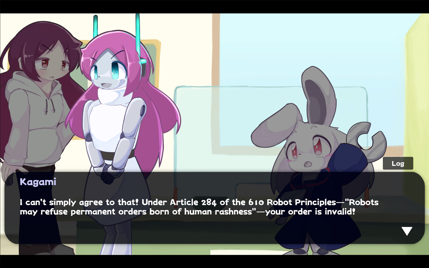 Kagari, a withdrawn child, and Kagami, the robot living in society as their stand-in— Only one will be recognized as the real Kagari. Your role is to gently observe their choices and decisions.