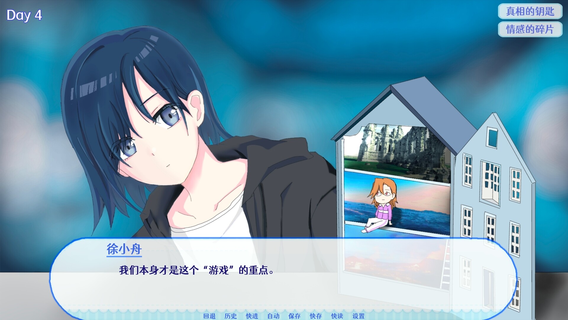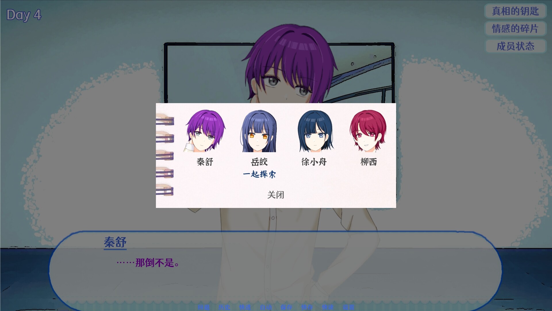在“七天”时间内,进行探索解谜或与四位角色对话。