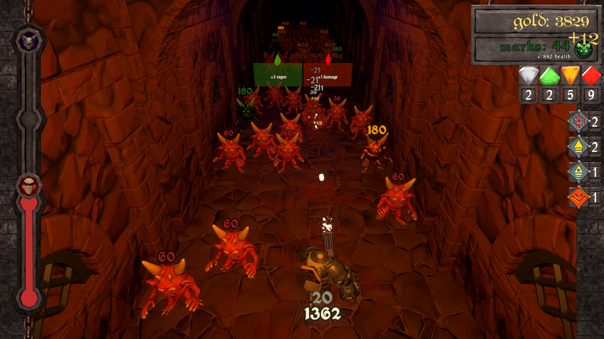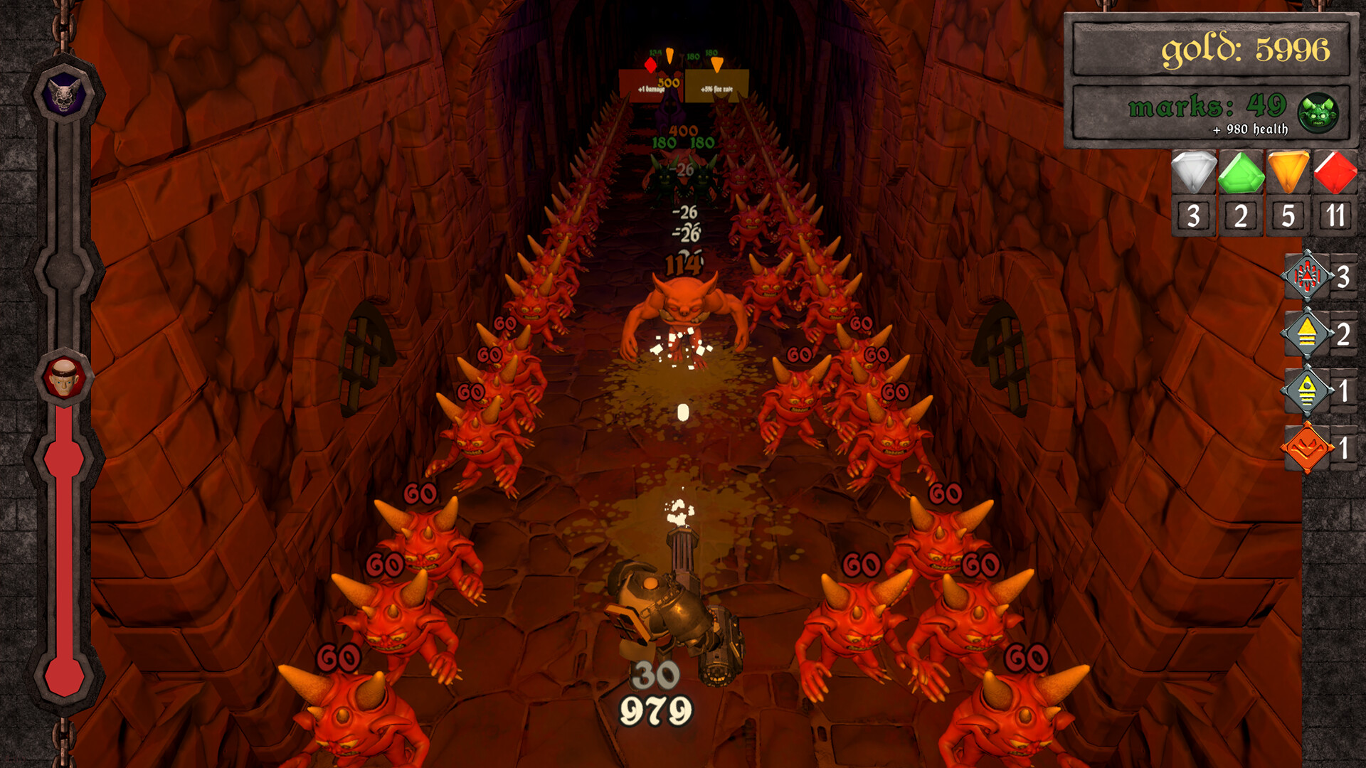 Fight off hordes of demons in this unforgiving shoot-them-up! A diabolic mix of the gates runner genre with survivor-like elements. Many foes and secrets await you in the catacombs...