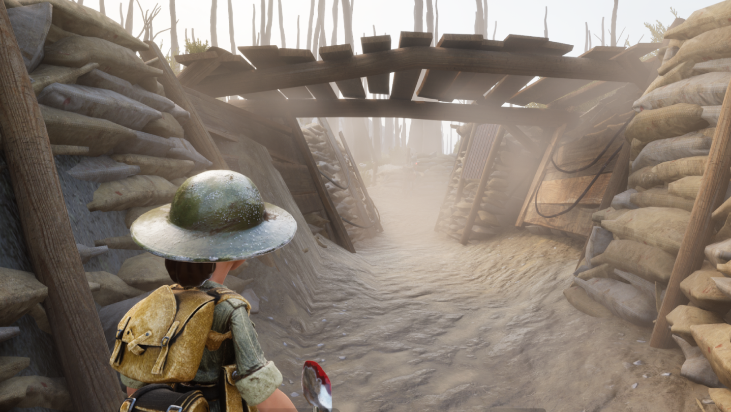 A unique aesthetic that fuses World War I trench warfare with stylized characters and over-the-top zombie-slinging chaos.