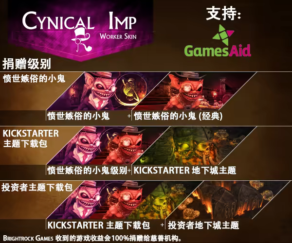 Brightrock Games 收到的遊戲收益會100%捐贈給慈善機構GamesAid ,作為支持Digital for Good initiative專案的心意。