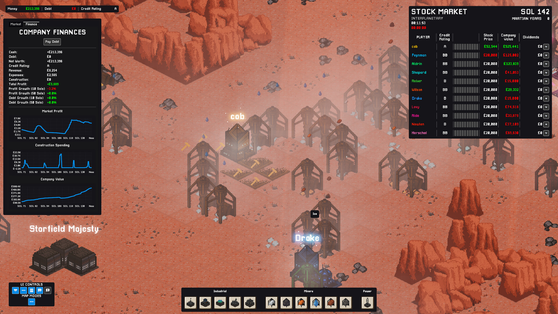 建立采矿业务,提炼原材料,并制造先进商品。参与一个由玩家驱动的动态而现实的市场,战略性地低买高卖以积累财富。最终目标?获得足够的资本来收购你的对手,并在这颗新行星上取得完全垄断。