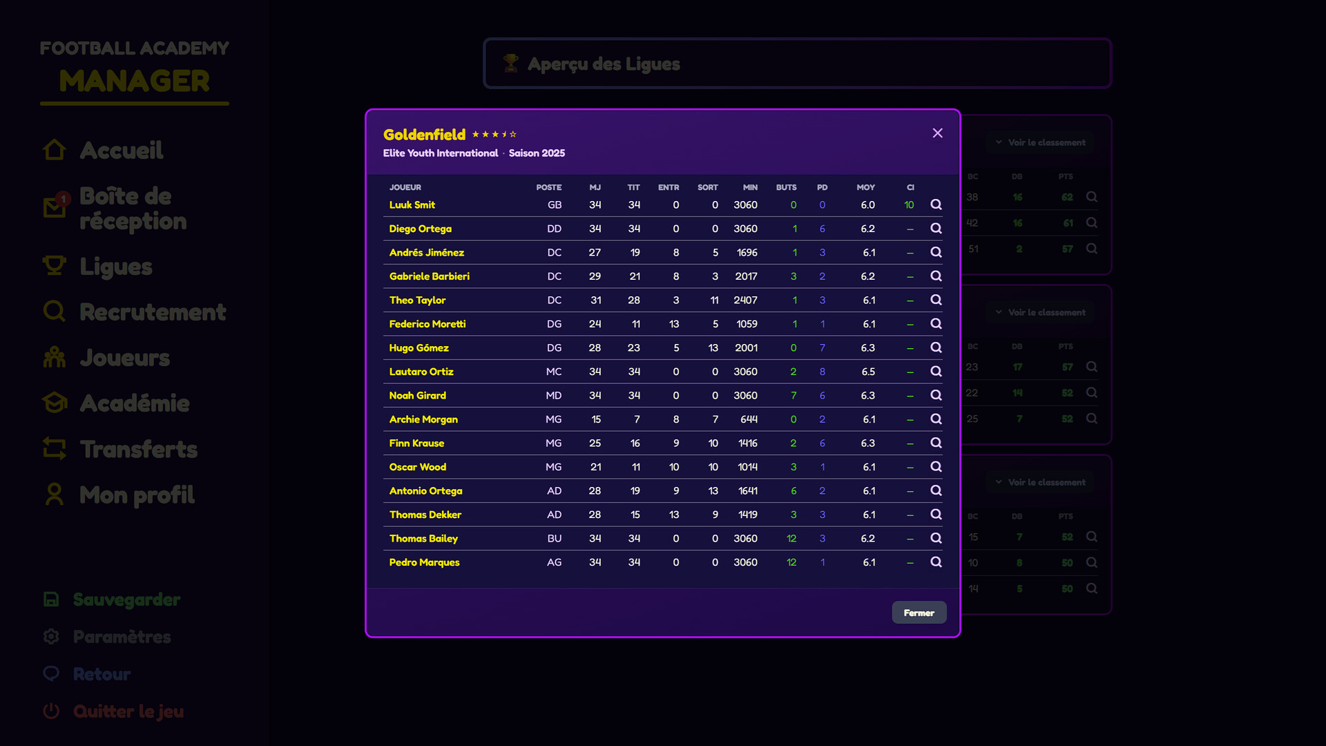 • Vendre des joueurs — place tes diplômés dans des clubs intéressés et finance la prochaine génération.
