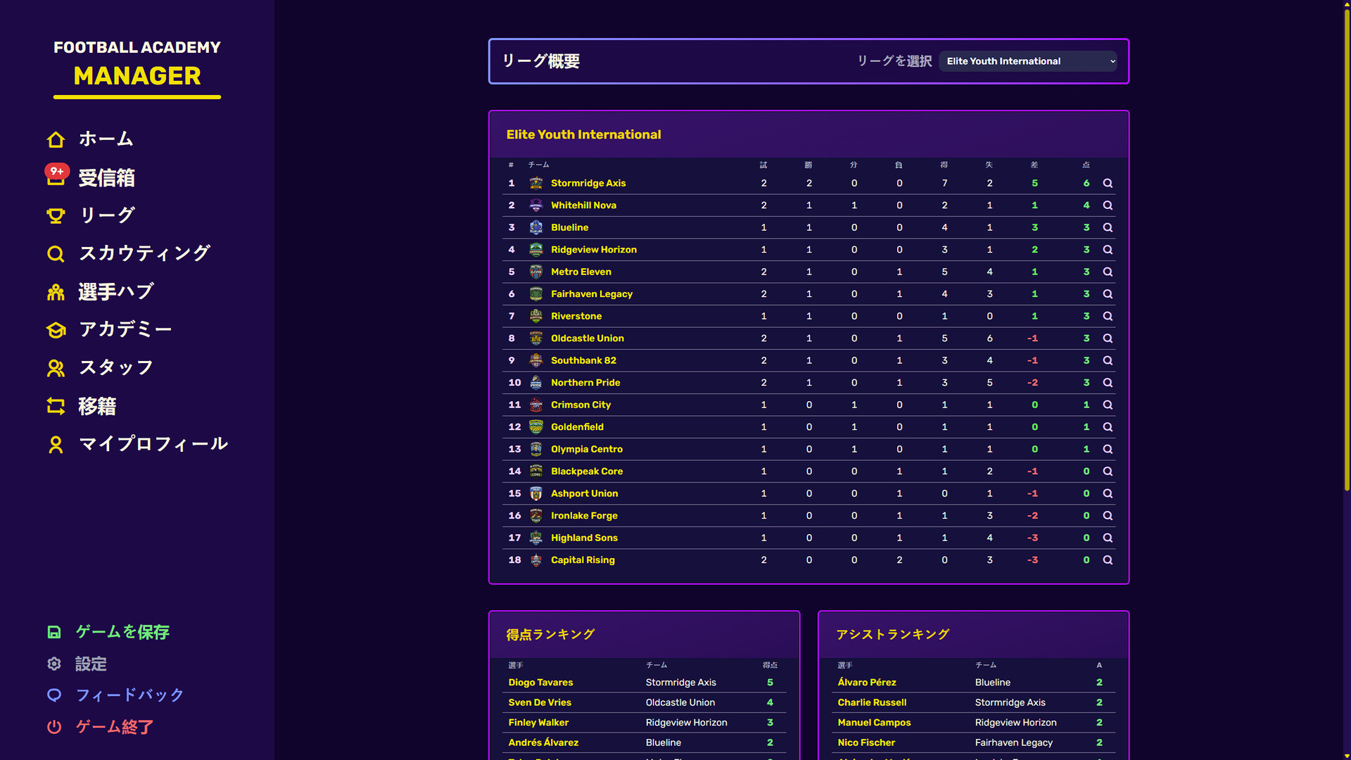 ユースの試合を観察して実力を見極め、合う選手を獲得し、狙いを定めたトレーニングで鍛え、施設を強化し、移籍で得た資金を再投資します。すべての判断が次の一手につながります.