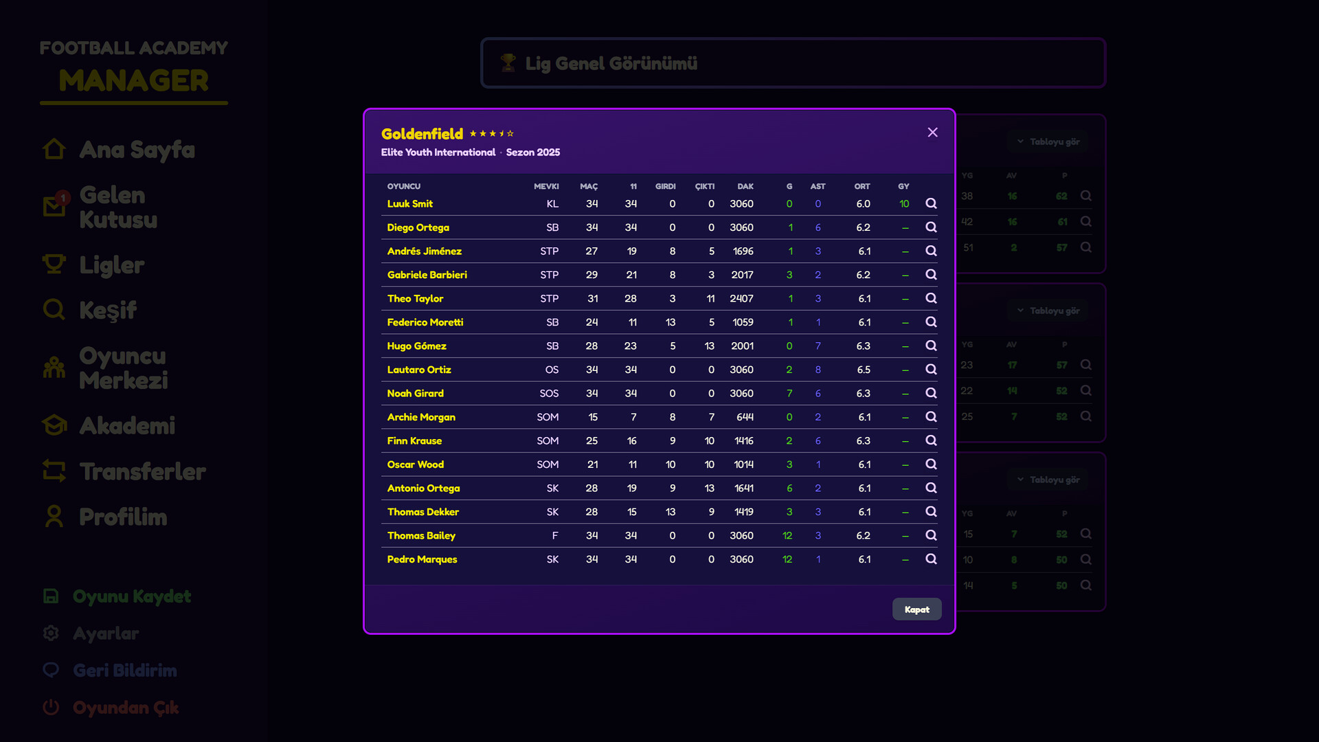 Genç oyuncuları keşfet, güçlü yönlerini ortaya çıkar ve akademine kat. Onları antrenmanla geliştir, doğru zamanda transfer görüşmeleri yap ve her başarıyı futbol dünyasında itibarını artırmak için kullan.