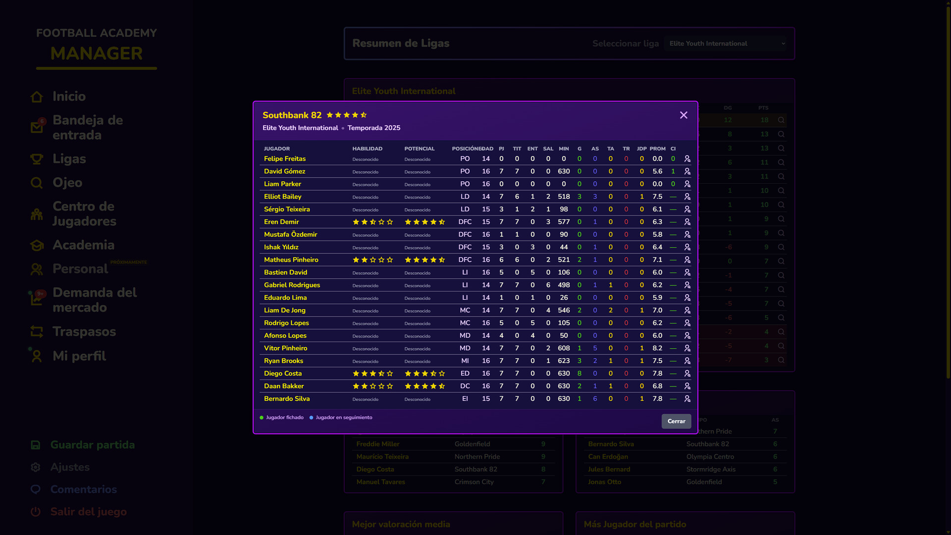 Dirige tu propia academia de fútbol. Ojea y descubre jóvenes talentos, evalúa su potencial, gestiona su desarrollo con el entrenamiento y negocia traspasos con clubes para aumentar tu prestigio e influencia.