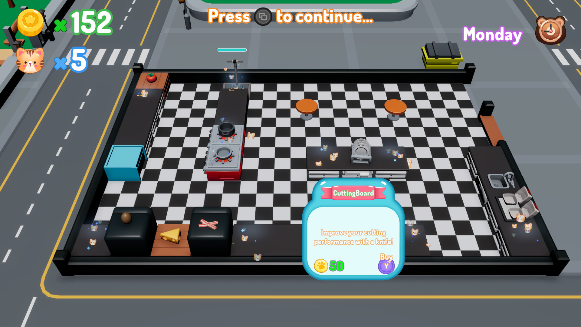 The demo features one map and one recipe (salad), giving you a focused preview of the chaos, charm, and strategy that define Kitty Can Cook.