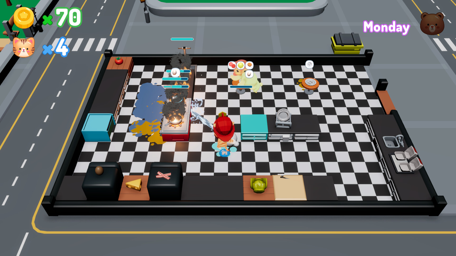 It’s not just about cooking — with limited kitchen space and time always ticking down, you’ll need to manage stations wisely, keep things clean, and get meals out the door before customers lose patience. Burned food can spark fires, so stay sharp and keep the kitchen under control!