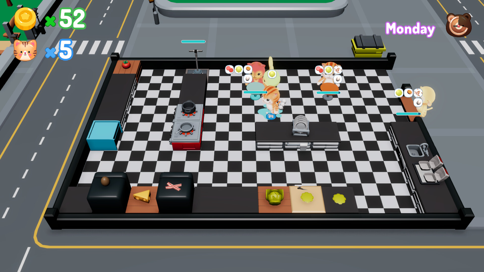The demo features one map and one recipe (salad), giving you a focused preview of the chaos, charm, and strategy that define Kitty Can Cook.