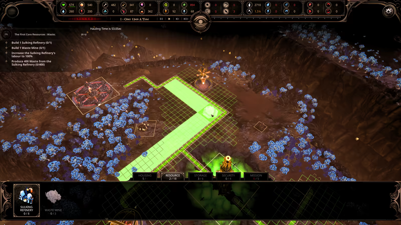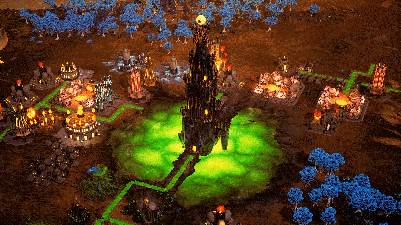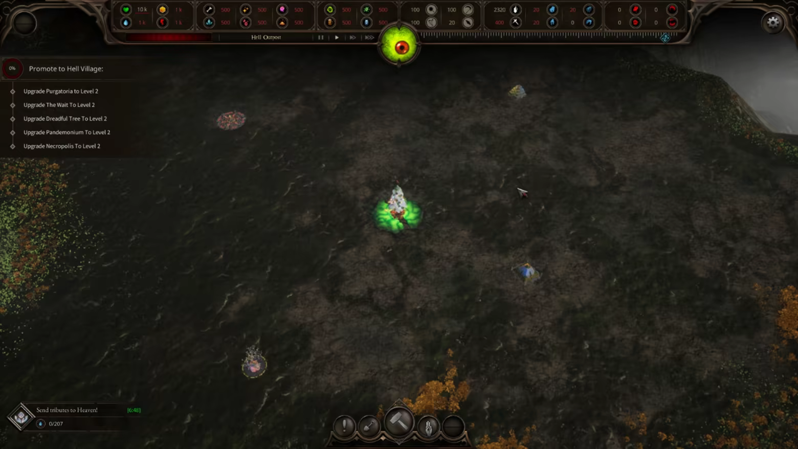 Every run begins with an empty hellscape. Place your first buildings, manage limited resources, and decide your early strategy. No presets, no safety nets, just you and a blank map in Hell.