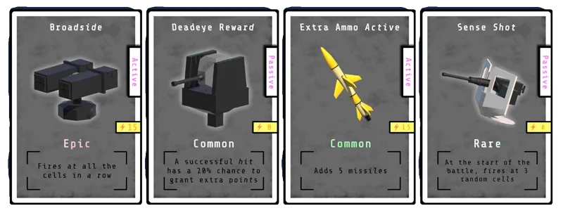 Uncover hidden warships, reach the score limit with limited shots, and reshape your tactics using powerful cards. A solo strategy game blending grid-based discovery with deep deck-building.