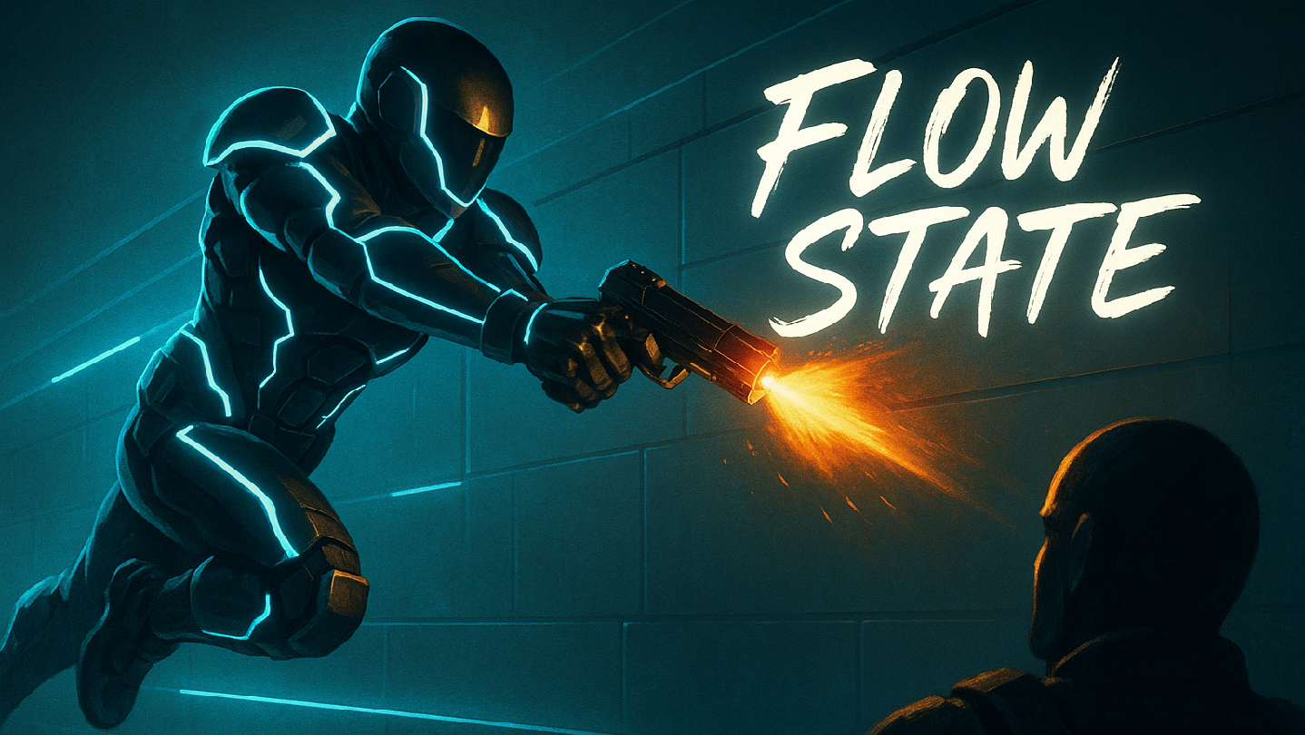 You’ll slow time to land impossible shots, then slide around corners, wall-run across gaps, and blast through enemies midair. FLOW STATE is about feeling cool and improving every time you play.