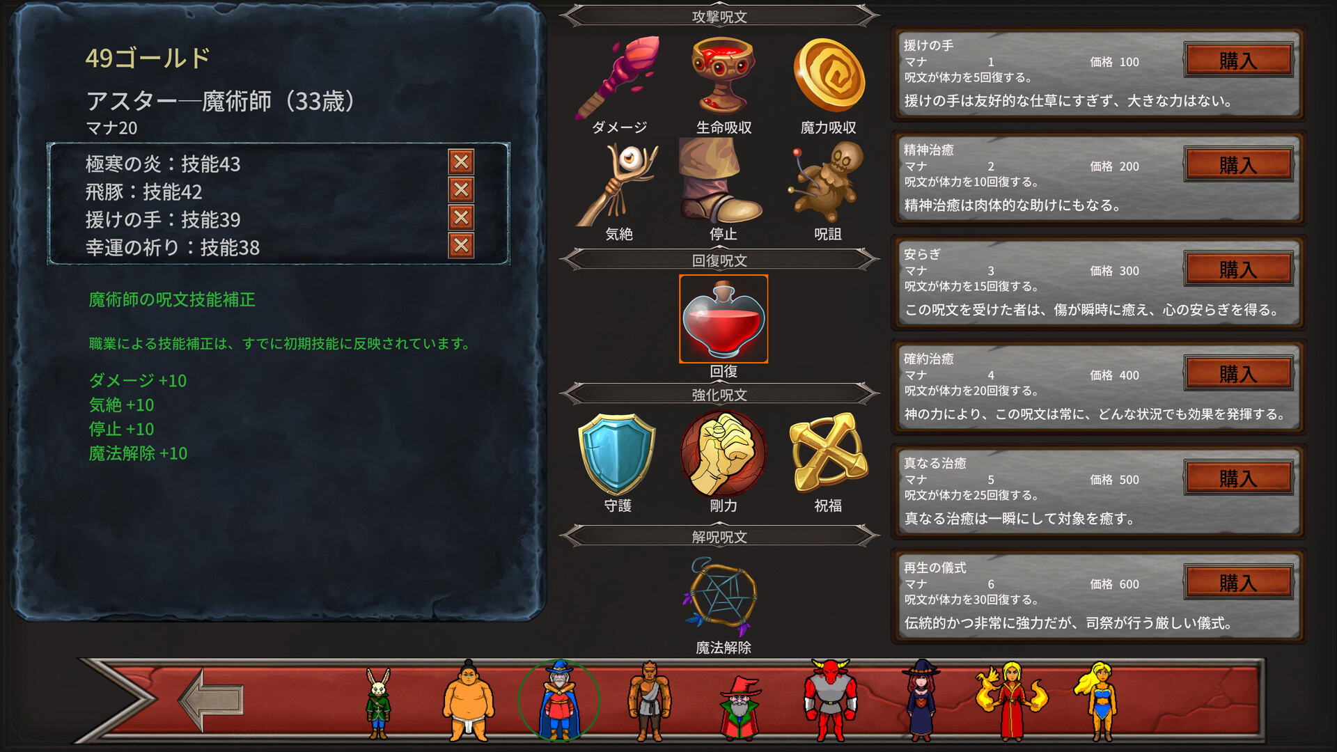 • 回避や魔法耐性といった補助スキル