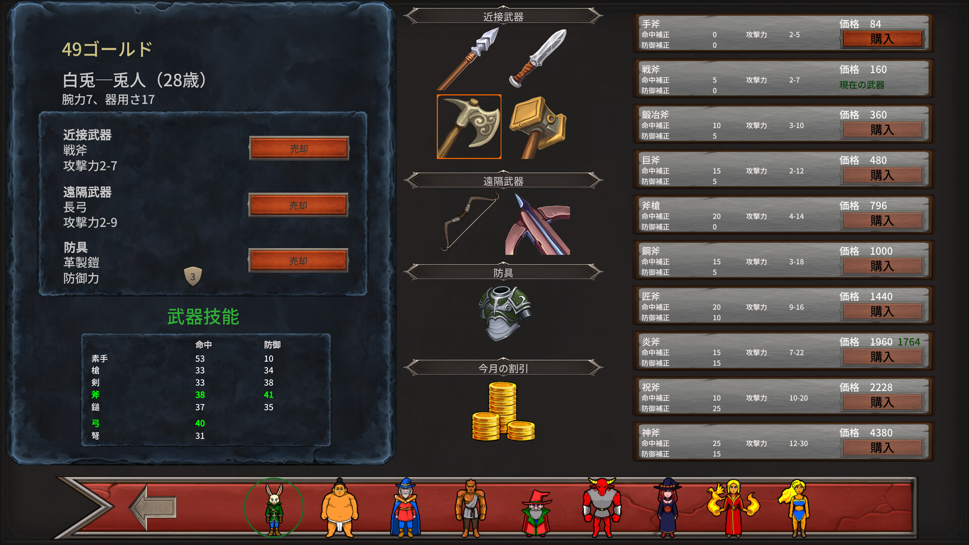 • 属性ステータス(腕力、器用さ、マナ、体力)