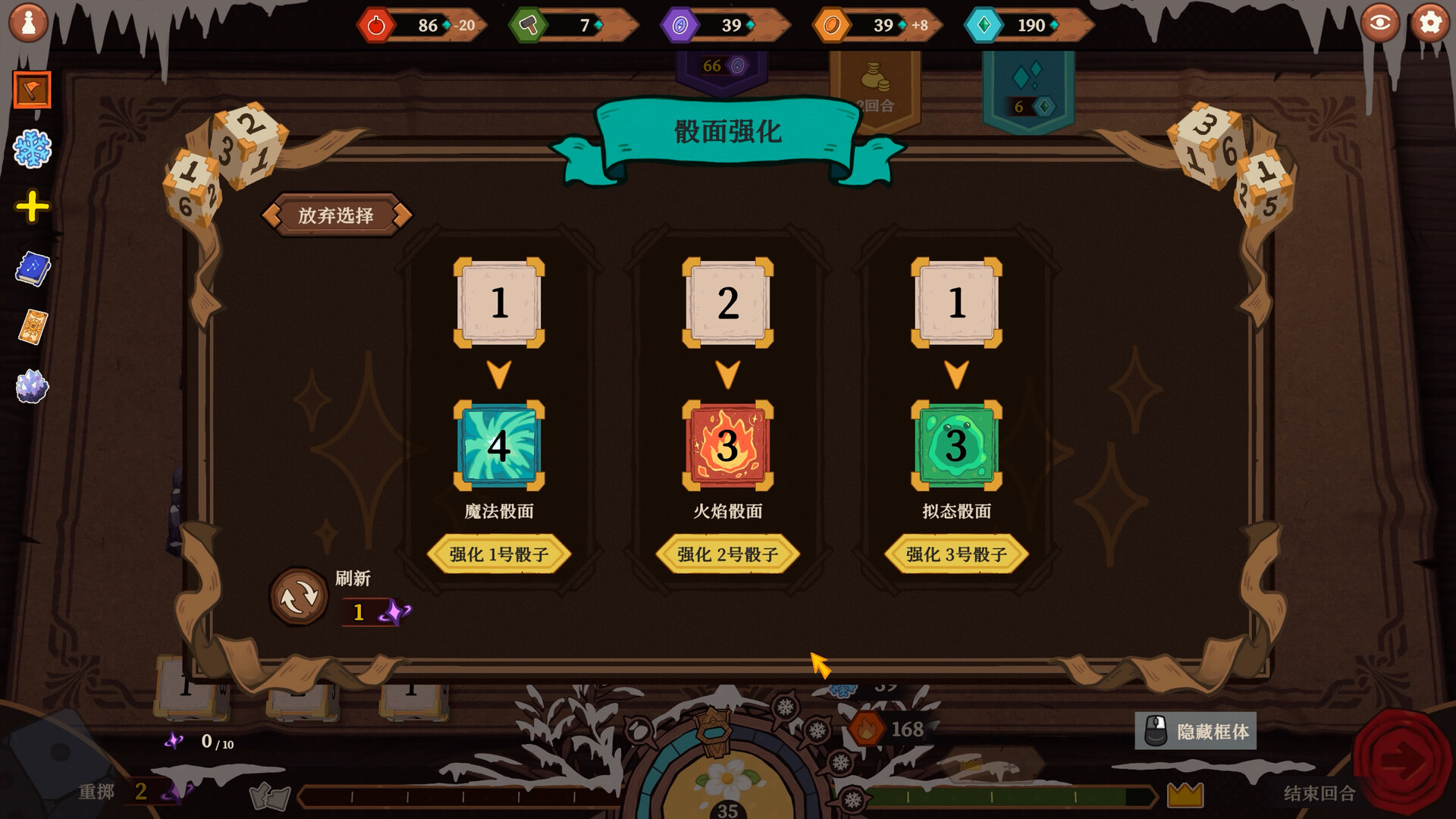 丰富的策略构筑维度——选取卡牌、强化骰面、发现遗物,并在关键时刻使用珍贵的符文石。
