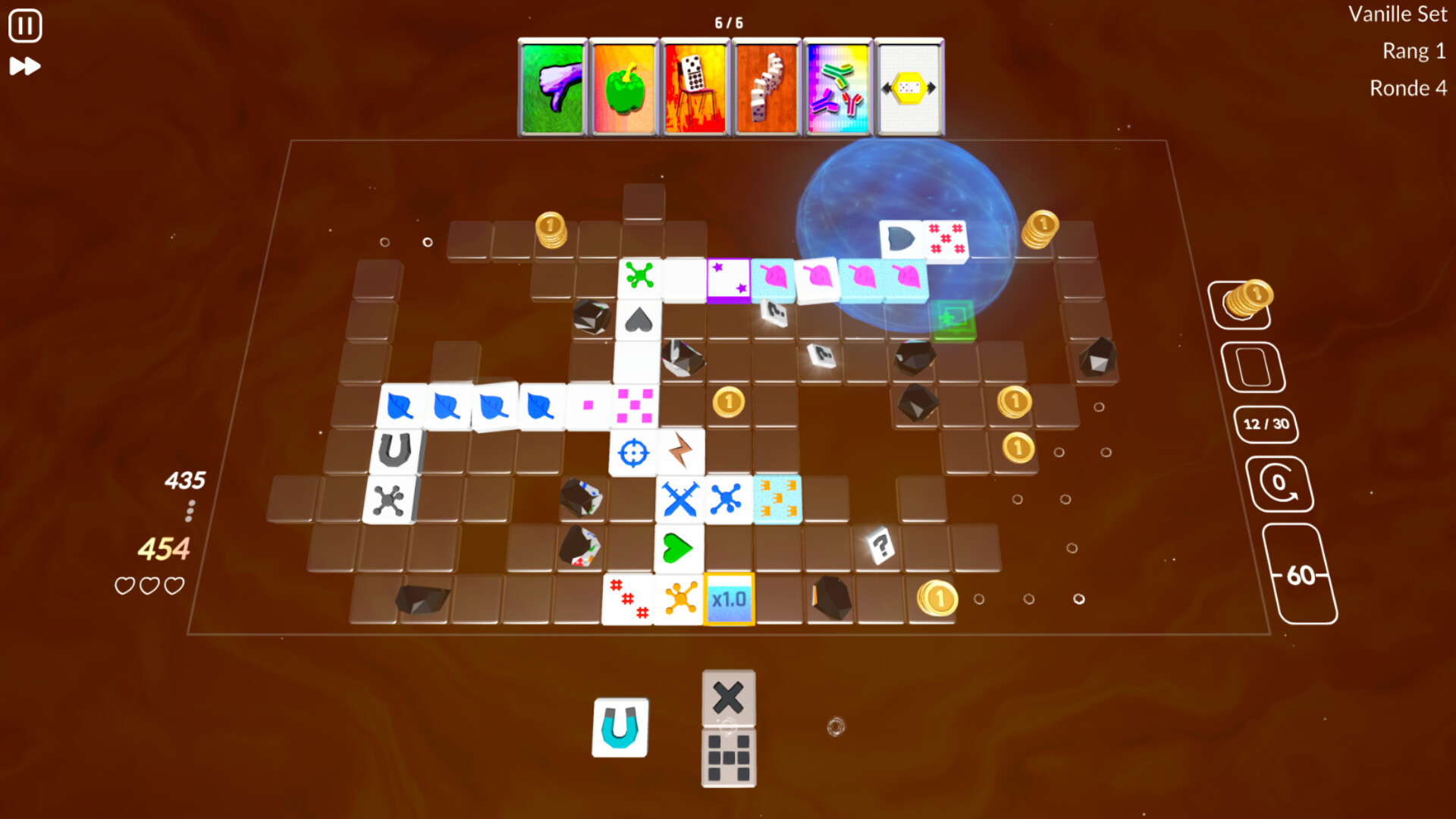 Dominova is geen goksimulator. De manier waarop je je domino’s plaatst, bepaalt voor het grootste deel je succes. Het opbouwen van je deck, het leren en beheersen van elk dominotype en het kiezen van de juiste upgrades geven je enorme voordelen die een veel grotere impact hebben op het resultaat van je run.