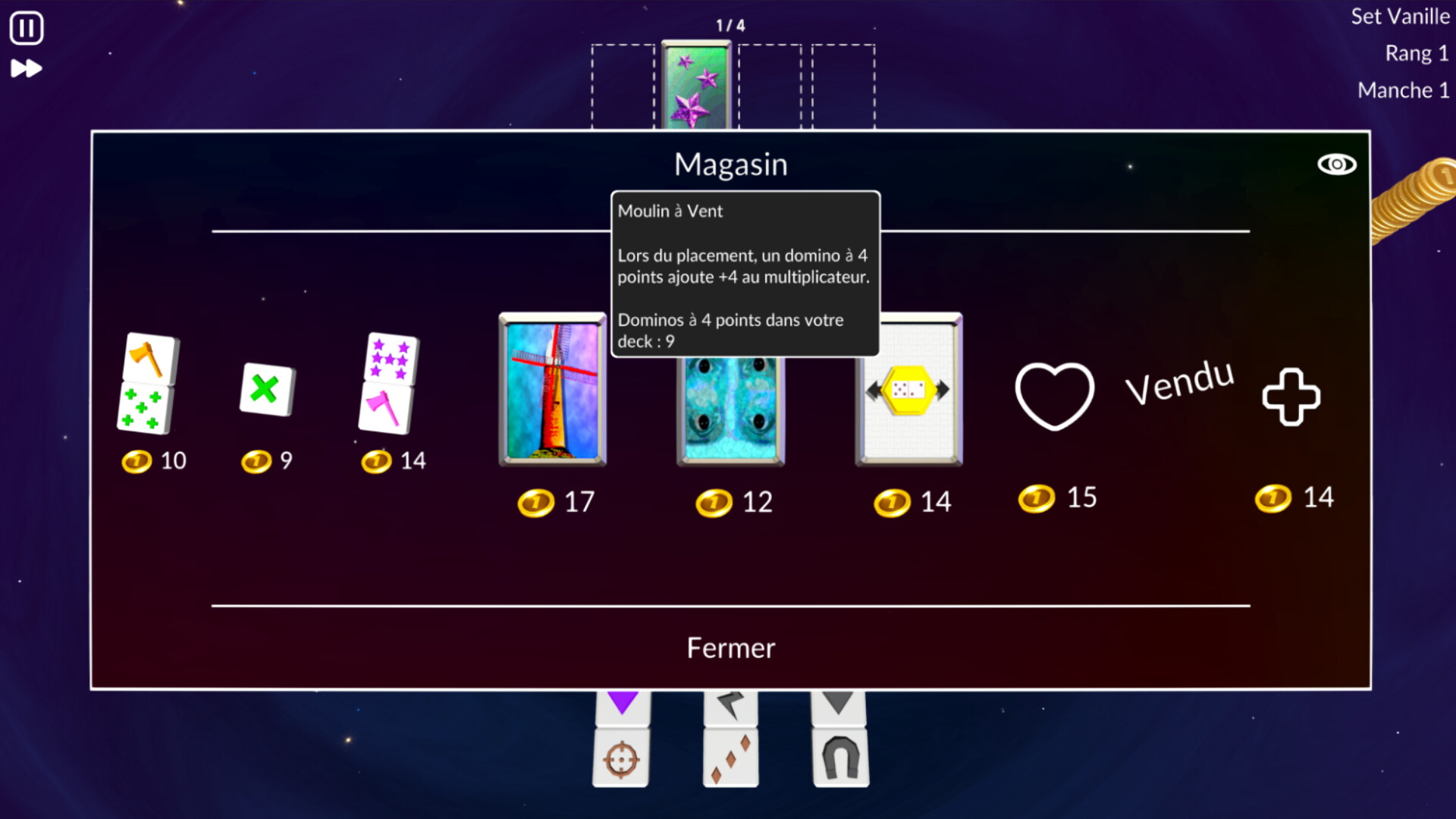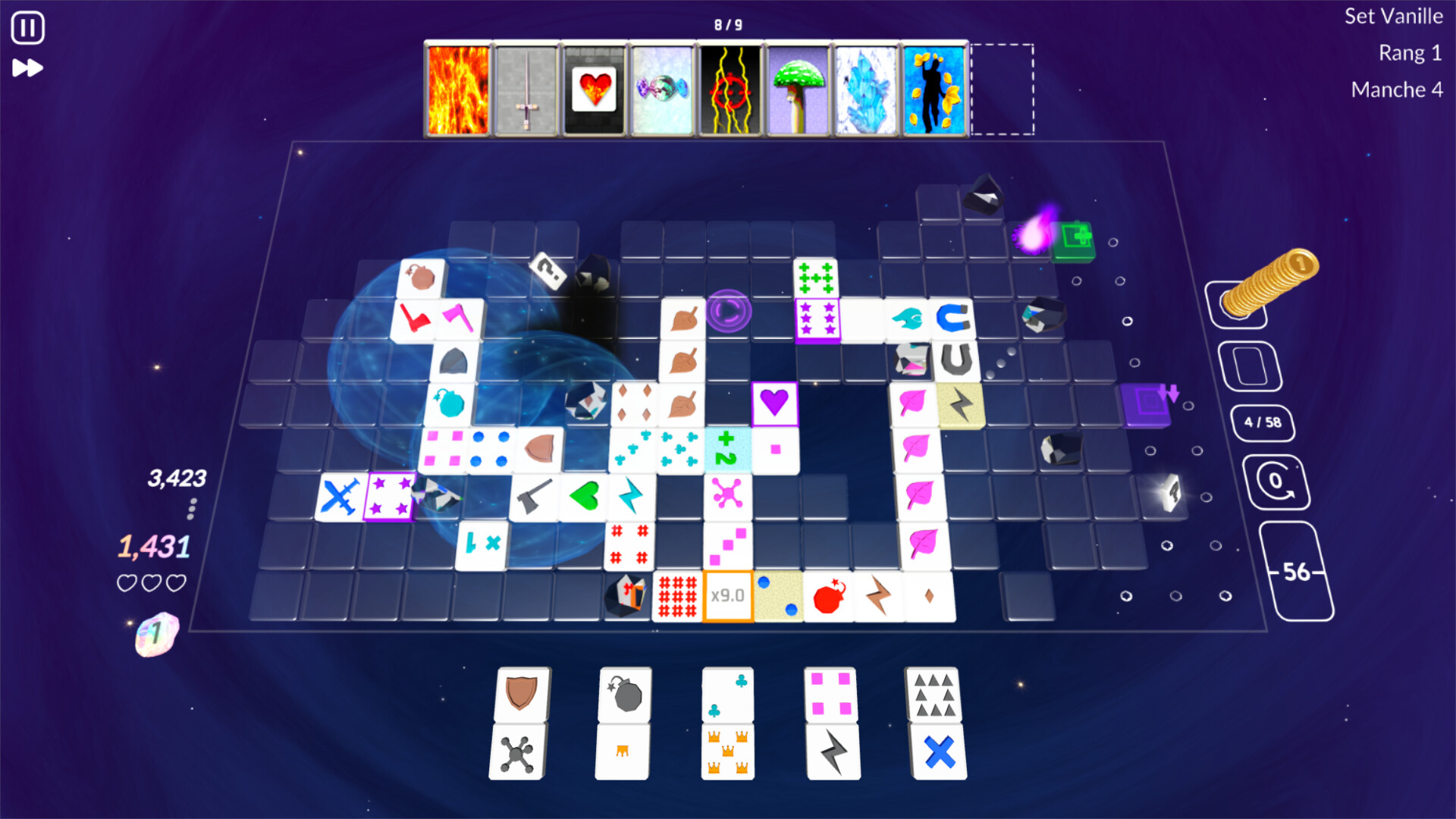 Dominova n’est pas un simulateur de jeu d’argent. La manière dont vous placez vos dominos déterminera la majeure partie de votre succès. Construire votre deck, apprendre et maîtriser chaque type de domino, choisir les bonnes améliorations vous donnera d’énormes avantages qui auront un impact bien plus grand sur le résultat de votre run.