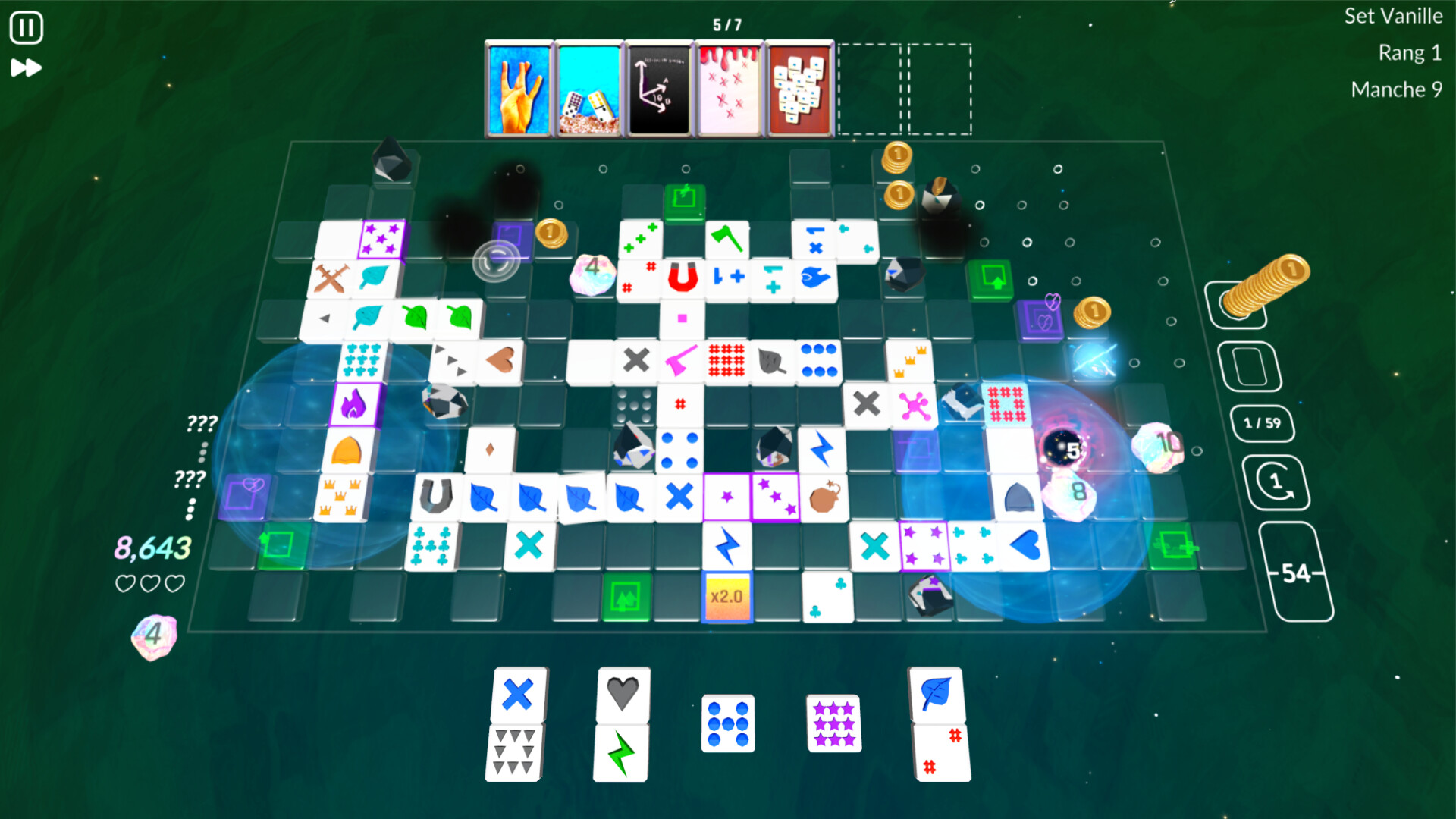 Le succès de votre partie dépend largement de l’achat de cartes Nova. Ces cartes peuvent créer des effets puissants ou des bonus de score si vous remplissez leurs conditions. Associez les bonnes cartes Nova aux bons dominos pour déclencher des synergies folles.