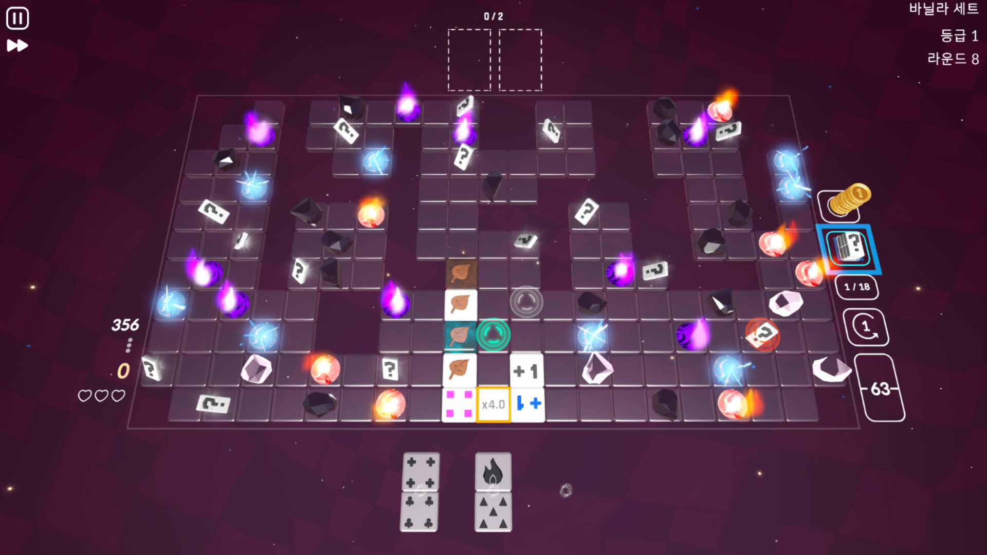 도미노 체인이 길수록 점수가 높아집니다. 점수가 충분하지 않나요? 그러면 게임 오버입니다. 떨어지는 유성이 보드에 새로운 장애물을 만들어 도미노 체인을 끊으려 합니다. 도미노를 방어하거나 장애물을 제거하여 보드의 제어를 유지하세요.