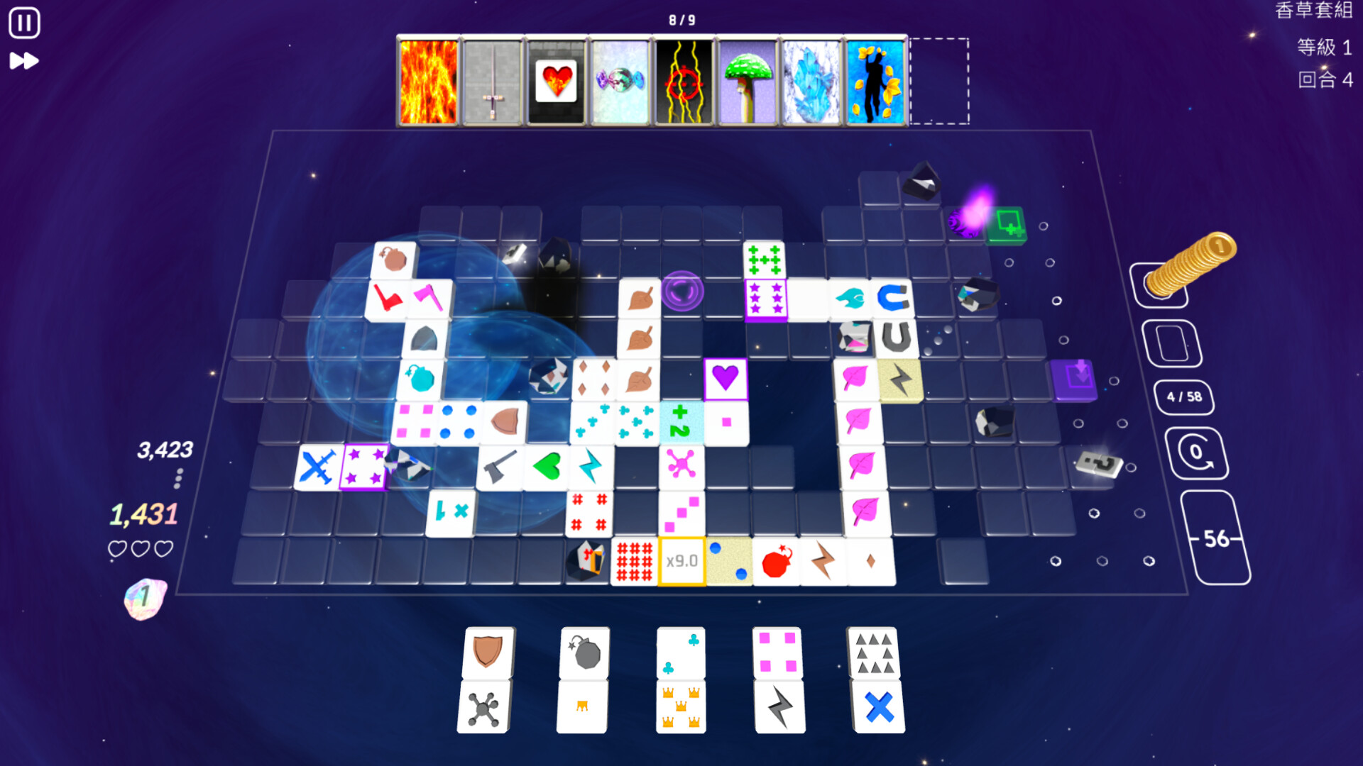 你的成功在很大程度上取決於購買新星卡。這些卡在滿足條件時會產生強大效果或得分獎勵。將正確的新星卡與合適的骨牌搭配,會觸發驚人的協同效應。