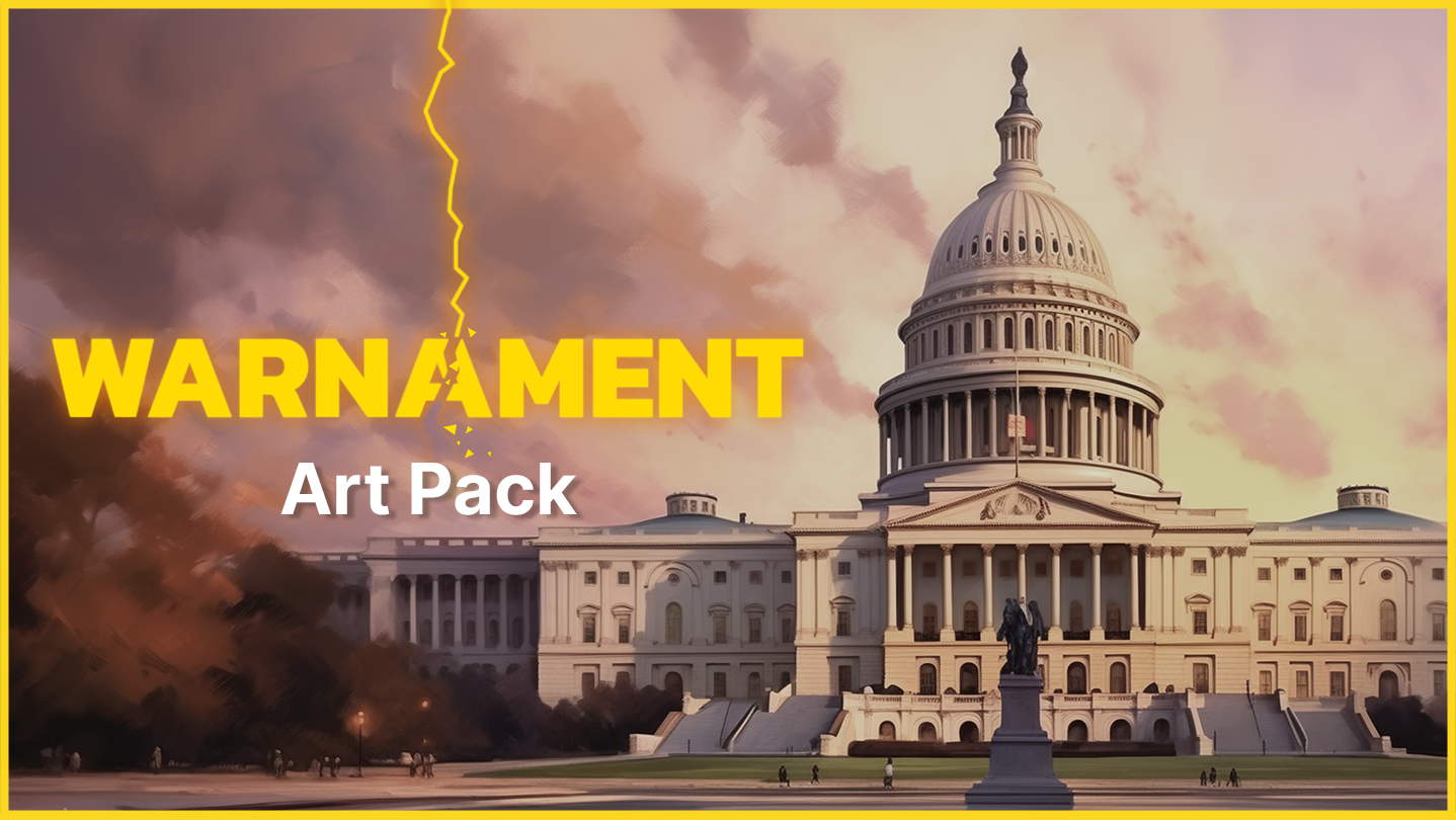 Le Warnament Art Pack contient plus de50 images créées pendant le développement du jeu. Il comprend des bannières, des croquis, des idées visuelles refusées, des écrans de chargement et de victoire, ainsi que des illustrations pour tous les événements du jeu.