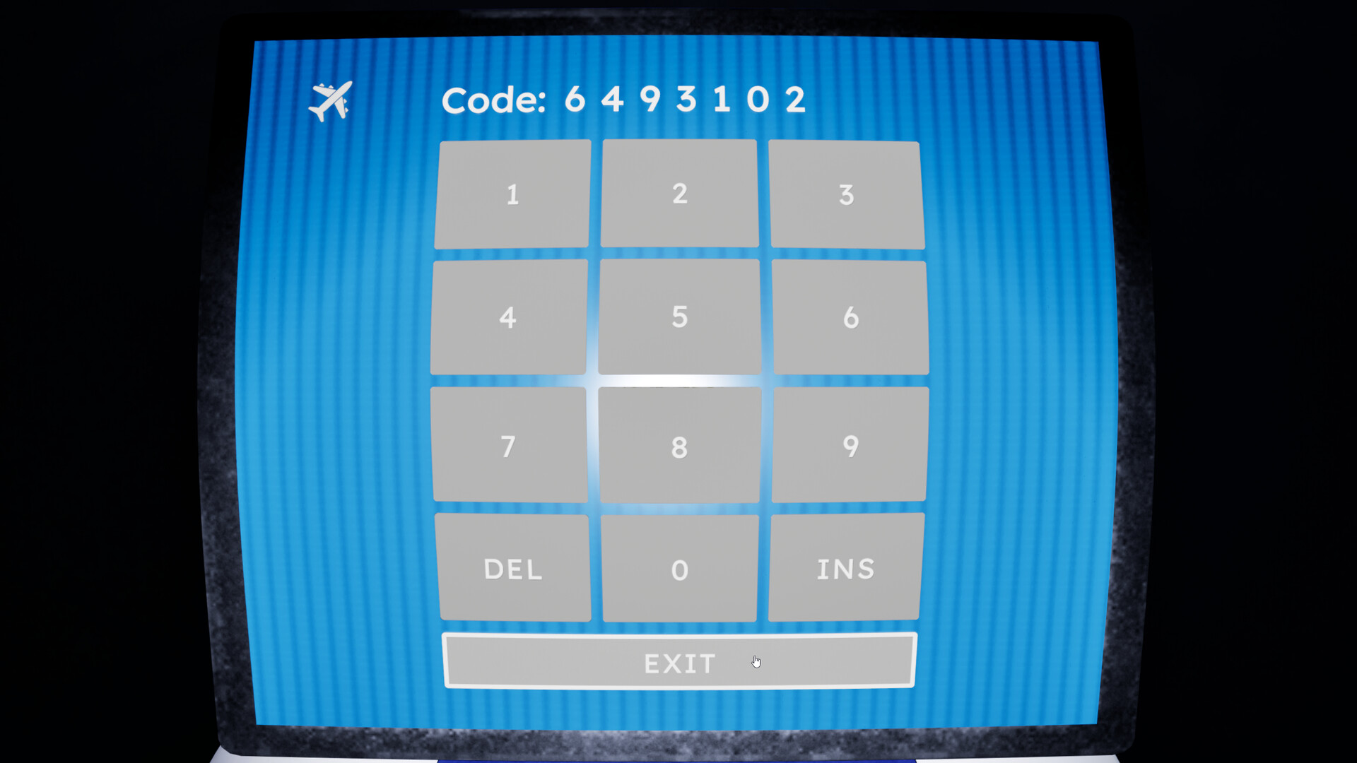 Nachdem die Nummer gefunden wurde, sollte sie in das Tastenfeld eingegeben werden, bevor mit der nächsten Schleife fortgefahren wird. Sammeln Sie den vollständigen 10-stelligen Code, verschaffen Sie sich Zugang zu den Flugsteigen und entkommen Sie.