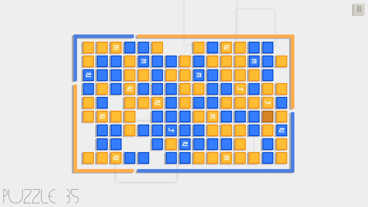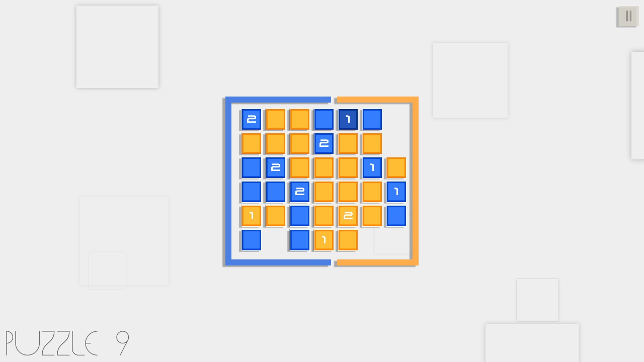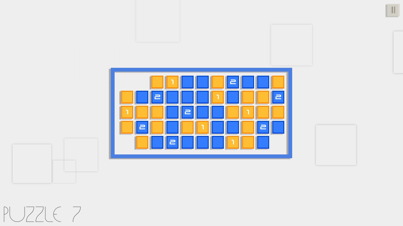 The goal of Wave Mechanics is to match the color of each element to the colors of corresponding parts of the frame. Each puzzle includes a set of active elements that can by used in order to change the colors of all elements within range in chosen direction, bear in mind however that the range of an active element decreases after each use.