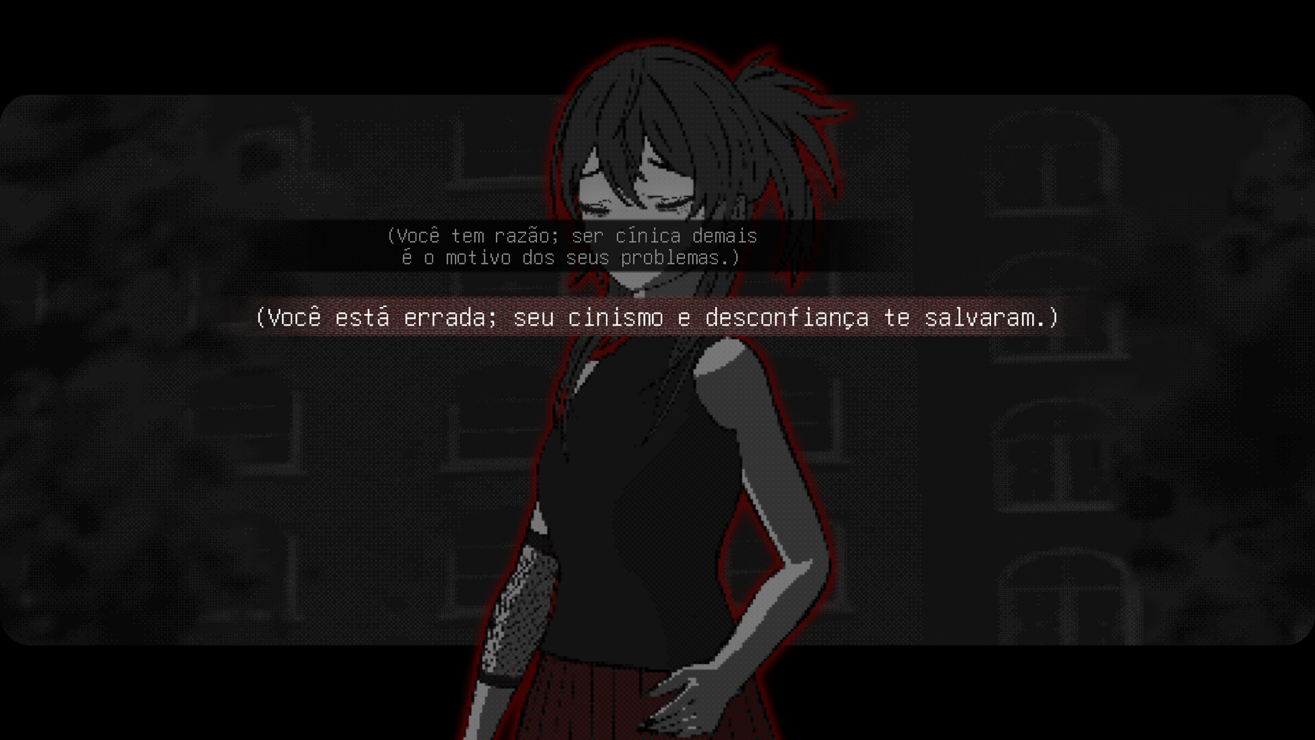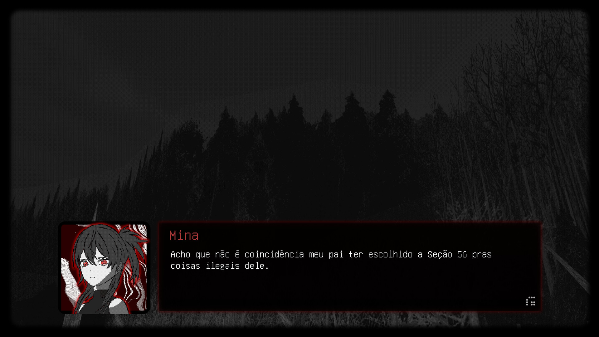 Guie Mina e Rex em uma sombria e intensa visual novel psicológica sobre trauma, amor e insegurança. Atravesse os perigos da Seção 56, enfrente o passado e defina o destino deles por meio de decisões que levam a quatro finais únicos.