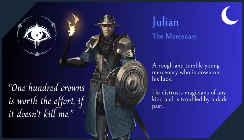Dancing with Shadows: Prologue is a 2D dark fantasy visual novel with CYOA-influenced branching storylines. Guide three protagonists through an interlocked and inexorably connected storyline. There are no wrong answers, but your decisions have consequences.