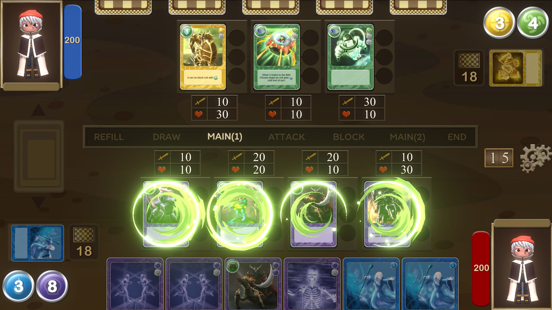 Gather CCG is a turn-based online card game where players take on the role of alchemists who compete by using elemental energy to cast units, spells, or weapons through their customized decks.