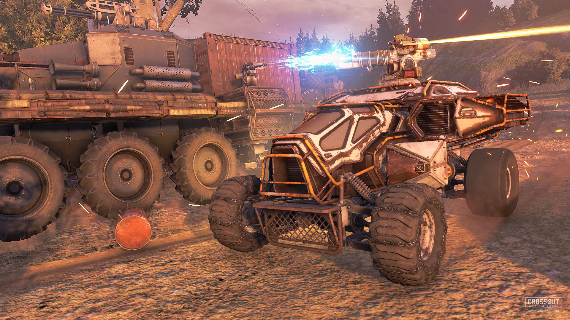 Join the Open Beta of Crossout, the post-apocalyptic MMO Action game! Craft your unique battle machines from dozens of interchangeable parts and destroy your enemies in explosive PvP online battles!