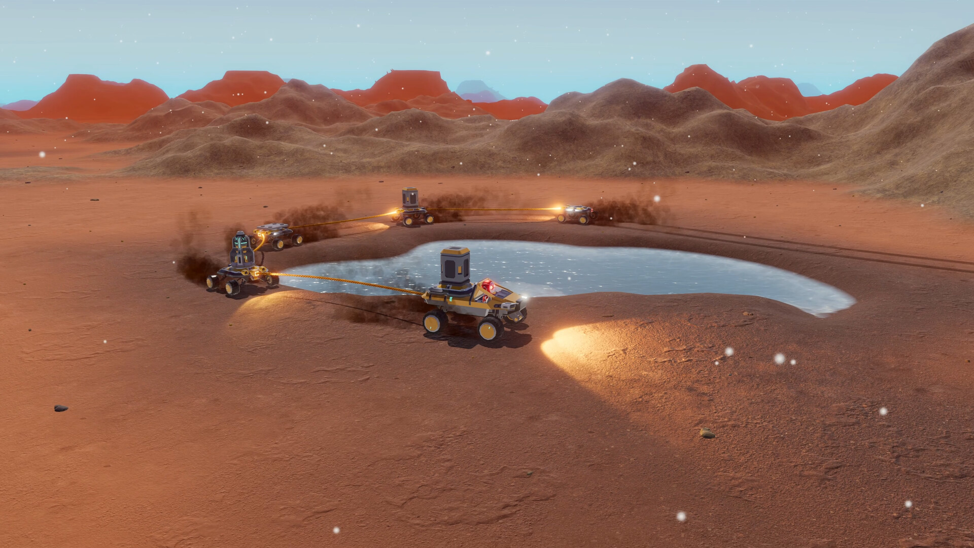 Build and customize modular rovers, attach functional modules like batteries, storage, and mining lasers, and chain them into convoys. Drive across the planet, mine on the go, and create fully mobile or stationary outposts for deep exploration.