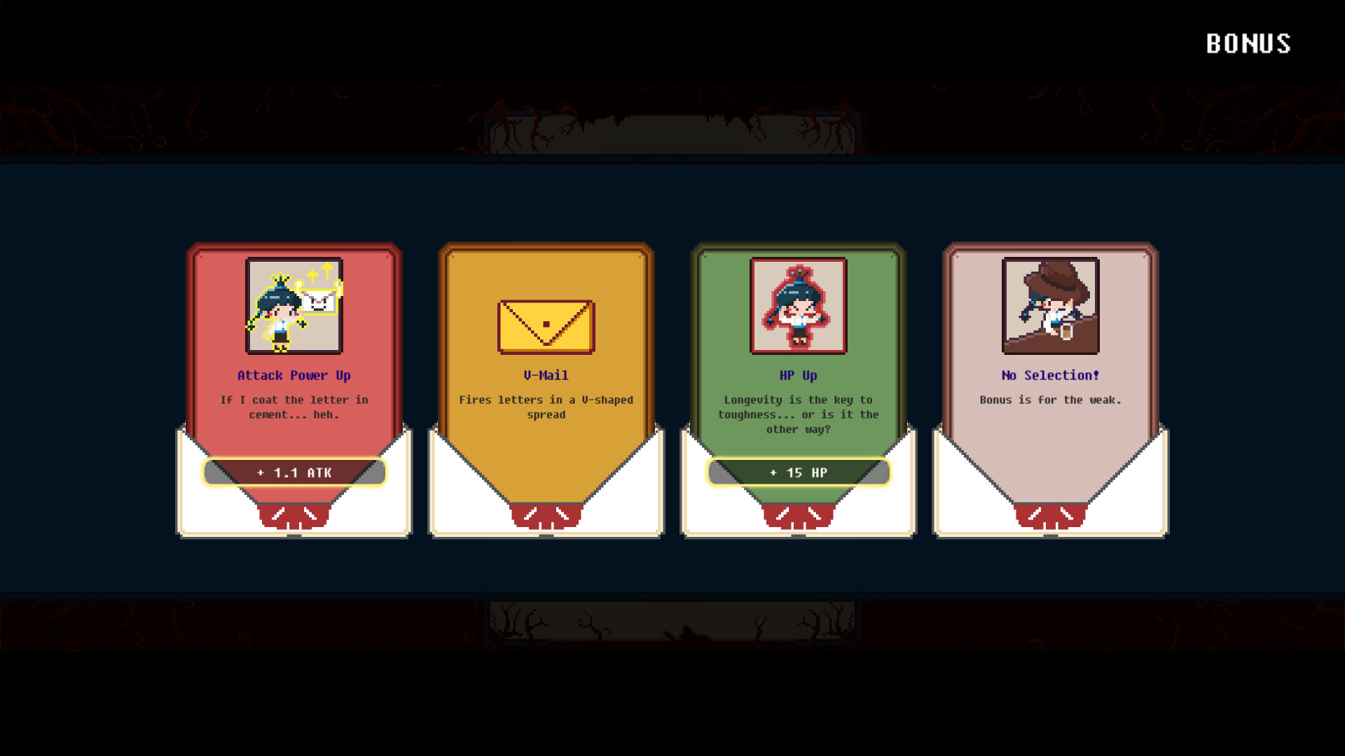 The game begins as Mongsil receives a letter and follows a strange bat-cat into a surreal underworld.