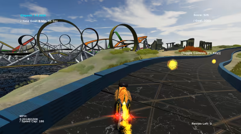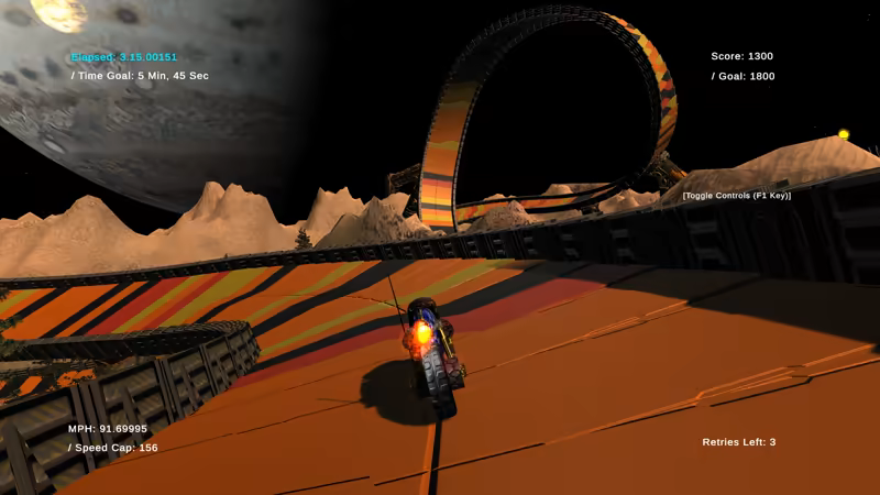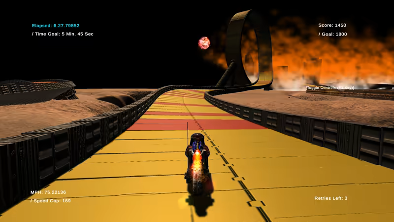 • This game was created by one sole developer with the help of some family and friends. Some aspects of the game are minimal such as the UI, menus and options. We hope that starting up a game, pressing a key and immediately getting into the action will be refreshing to players. In an age where sign-ups, character creation and customization halt you from starting the experience, we wanted to make a game where you open the game and just immediately get to play. The sole designer of this game made sure to focus on what you came here for:  hand-crafted tracks, overwhelming speed, jaw-dropping planet environments, and a whole lot of Loops!