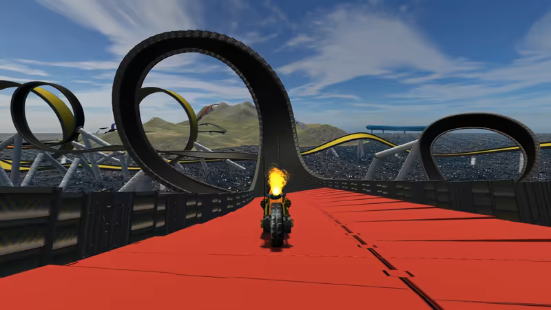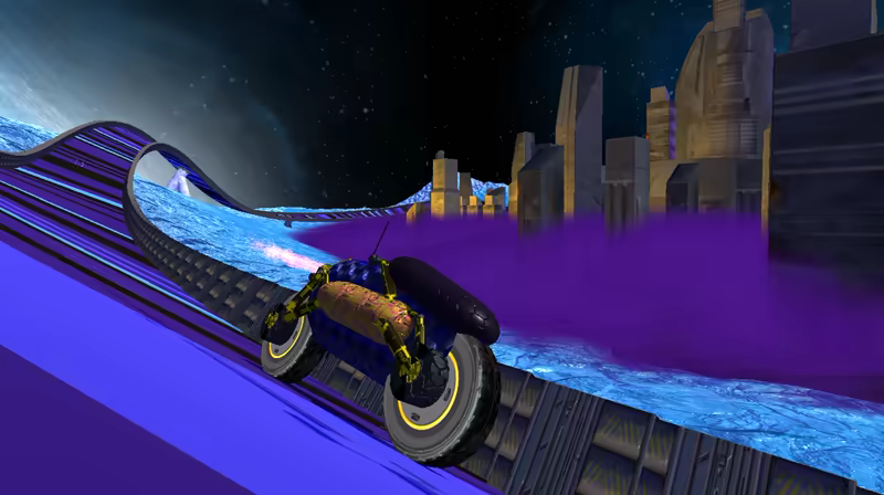 Velocity One is a Futuristic Track Challenge game that resembles your favorite mid-to-late 90s futuristic racing games, but with stunning, modern atmospheric environments and a truly terrifying amount of loops and inversions. And this time... you are not magnetized to the track.