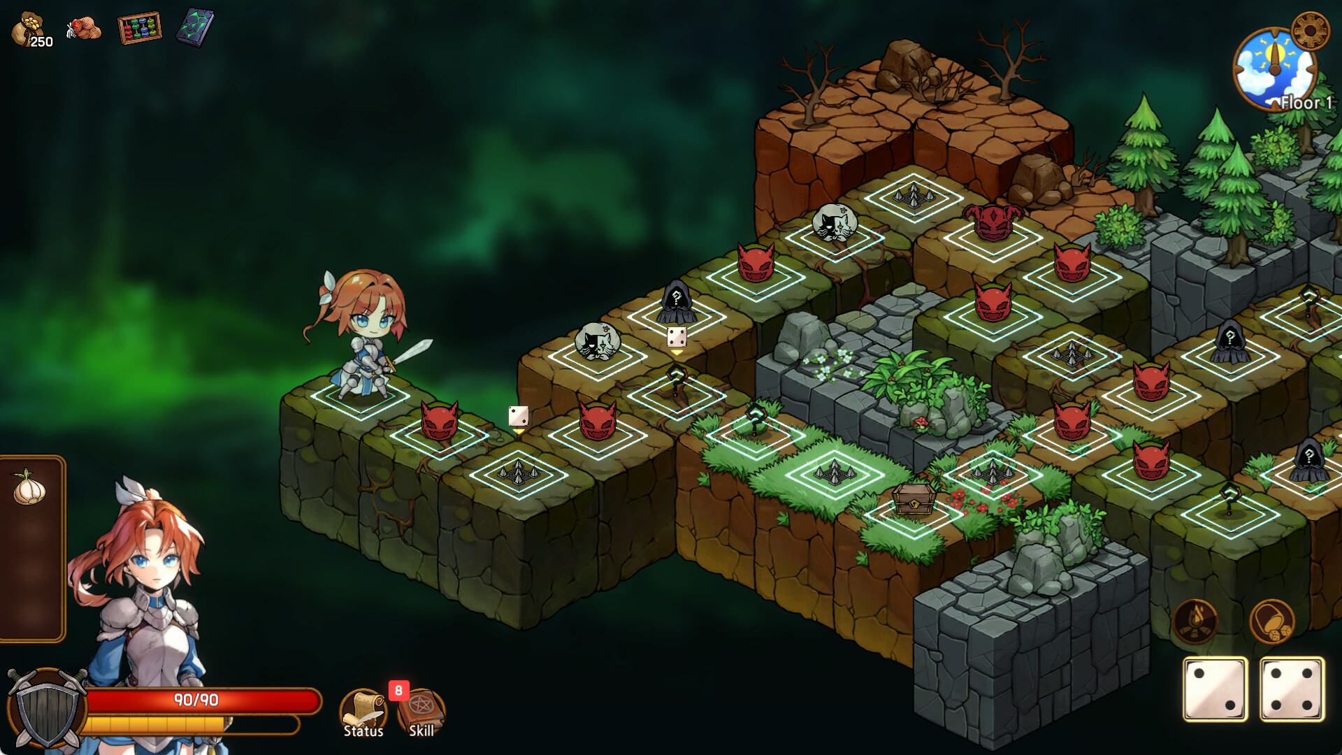 El juego utiliza un sistema de lanzamiento de dados para el movimiento. Esta mecánica interactúa con varios efectos de artefactos, permitiéndote añadir dados, retroceder u obtener beneficios al seleccionar números específicos de dados. Esto crea una experiencia atrapante que va mucho más allá de simplemente elegir la siguiente casilla a la que moverte.