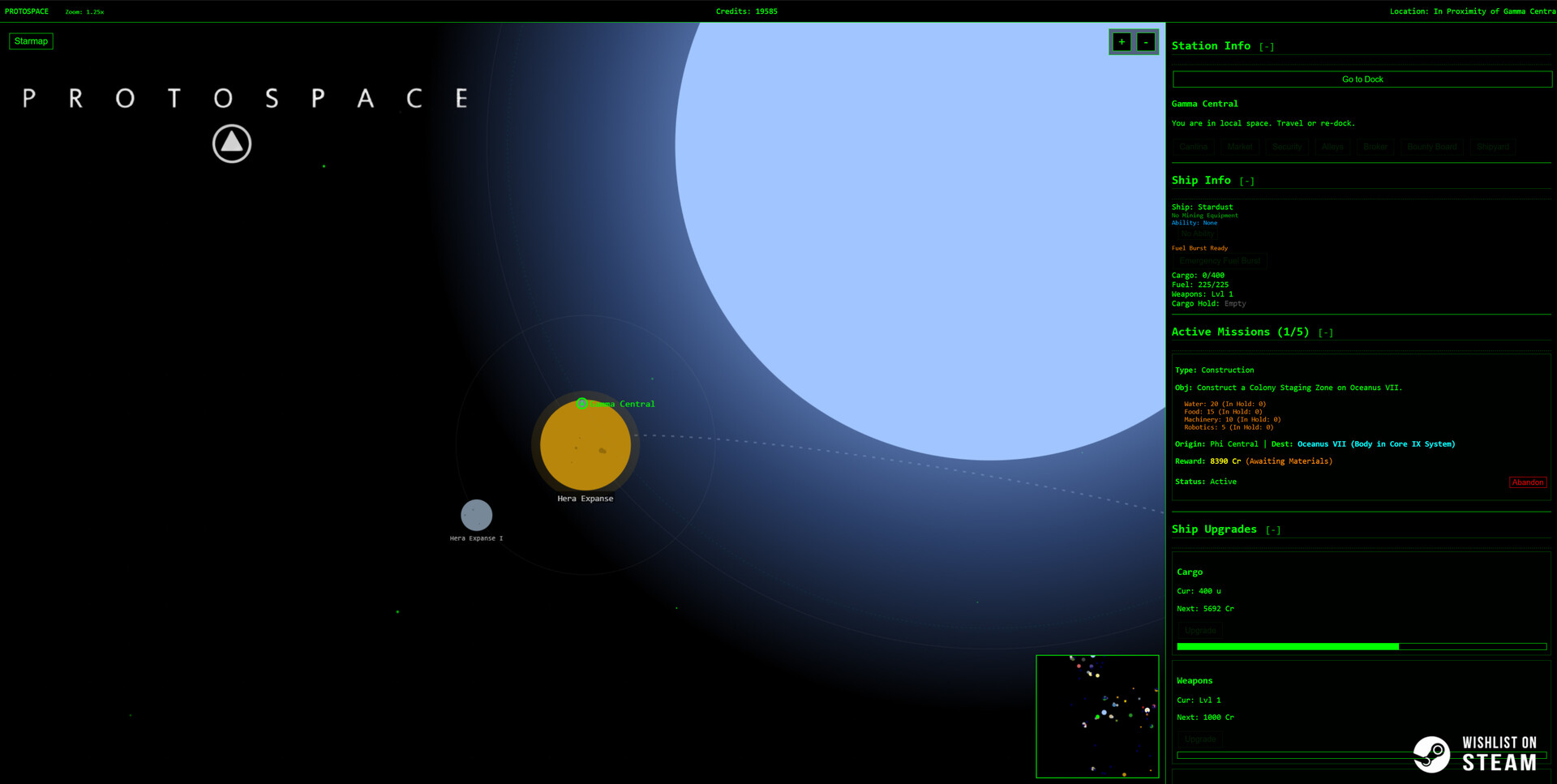 From the top-down tactical view of your lo-fi starmap terminal to your shipyard with a view of your current ship and upgrades, you'll navigate a massive, procedurally generated region of space. Every dot on the star chart is a destination, and every destination is a choice.